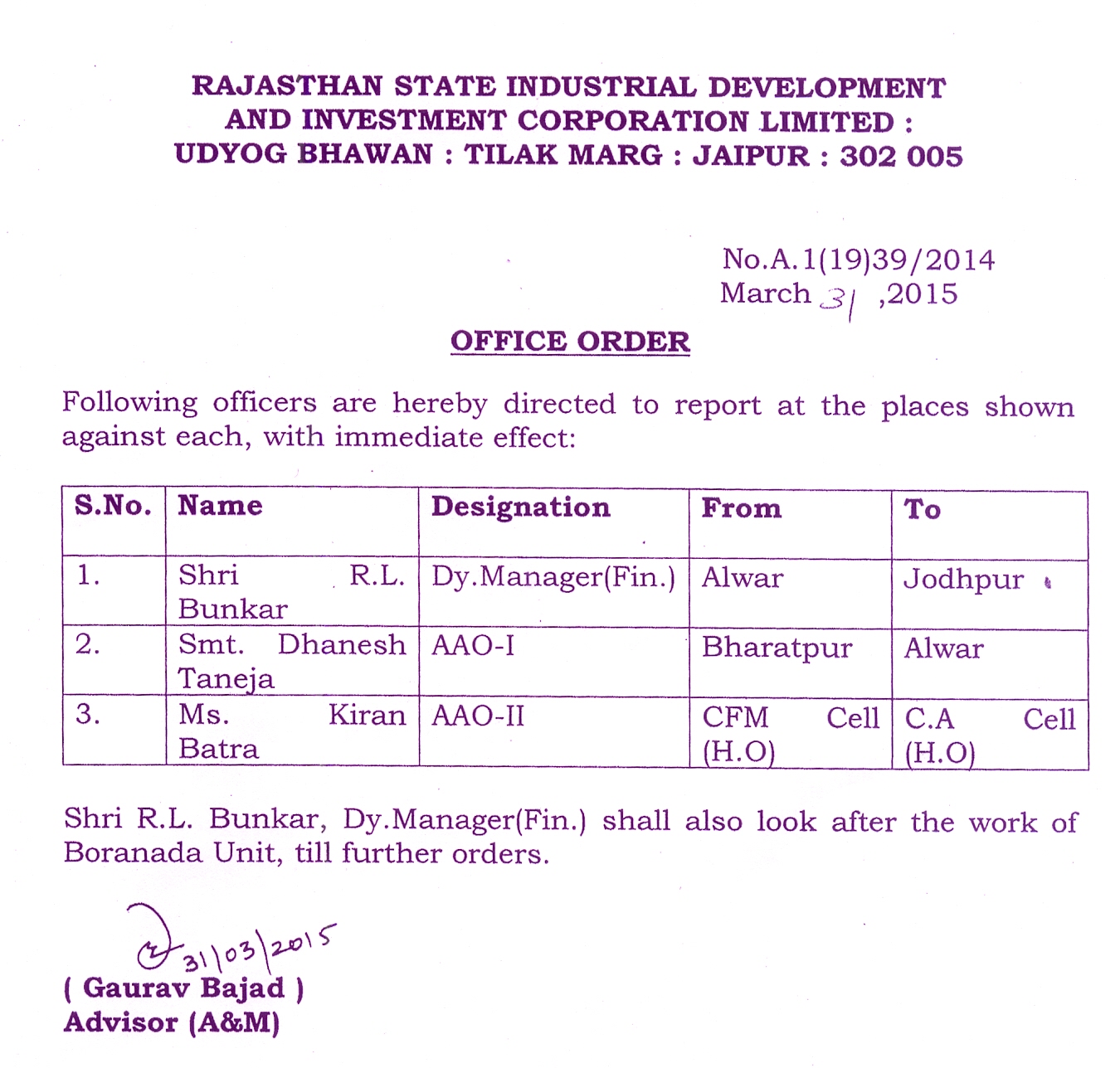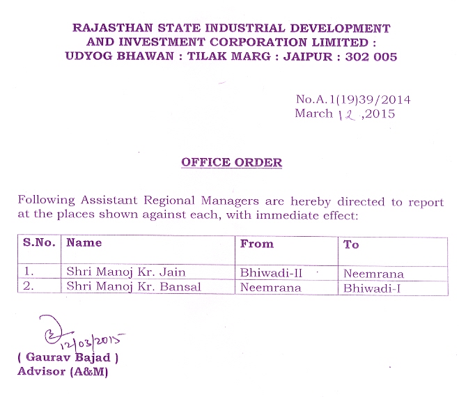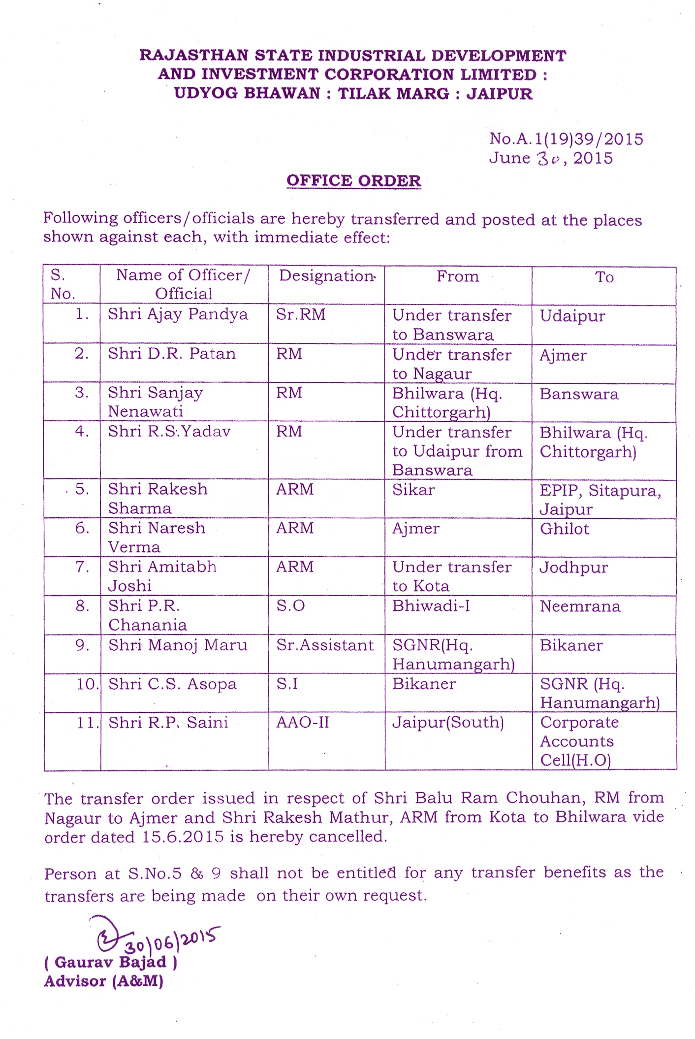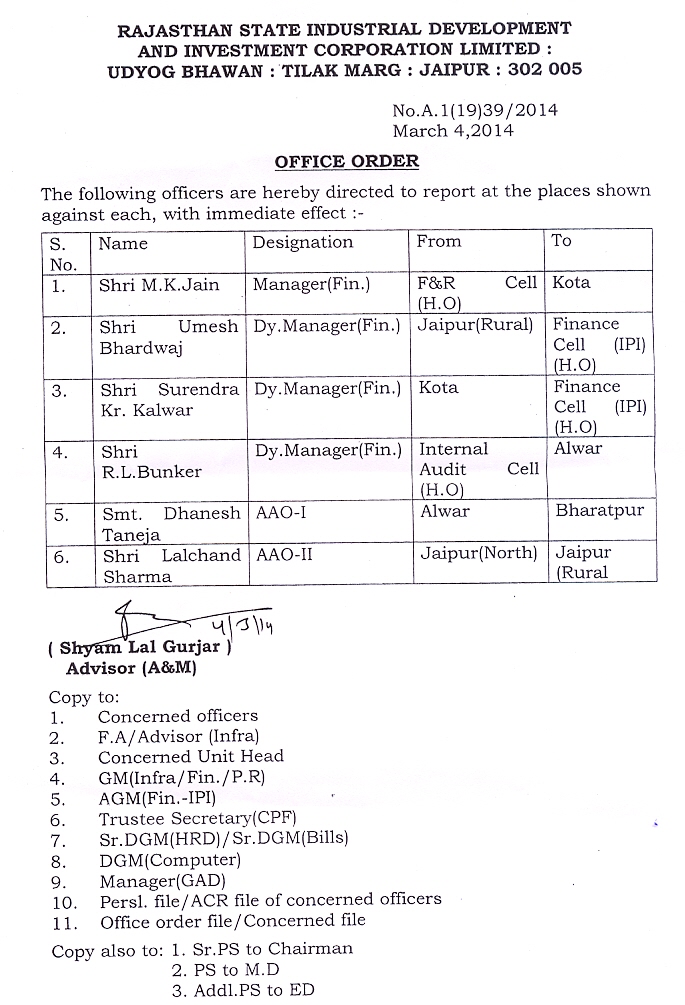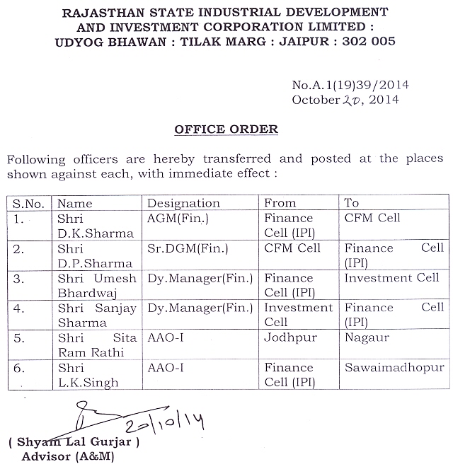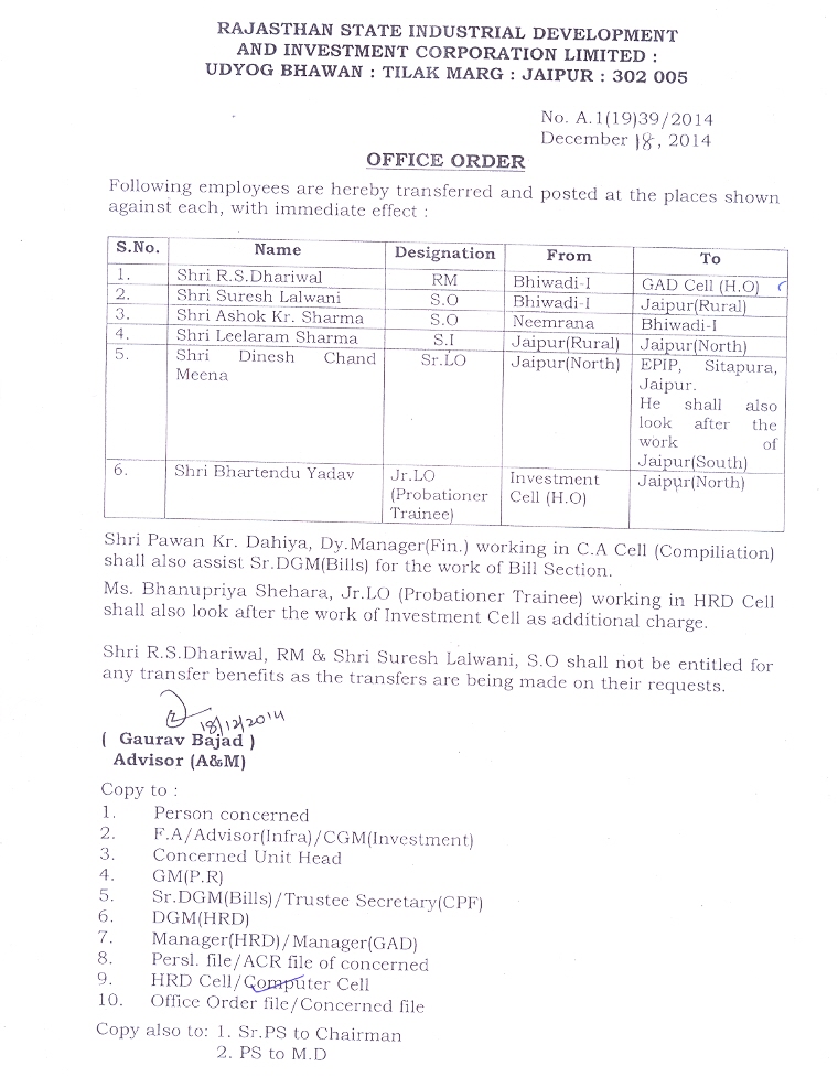 | 32. | Transfer Order (Finance) | 29.06.2018 | 29.06.2018 |