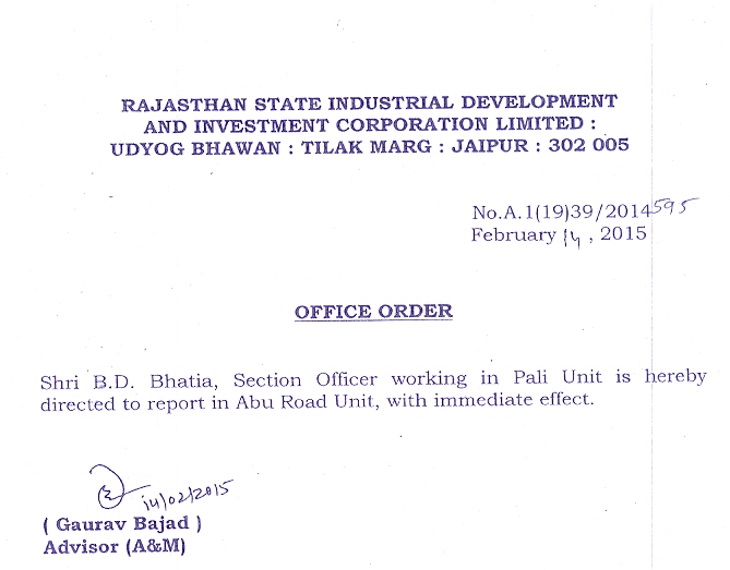 | 22. | Transfer Order | 04.03.2016 | 04.03.2016 |