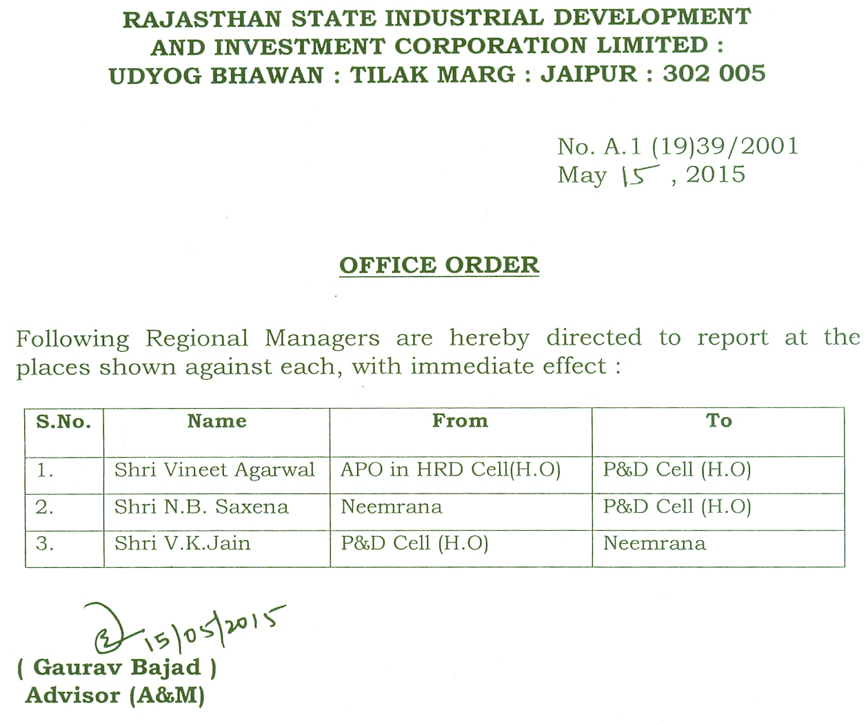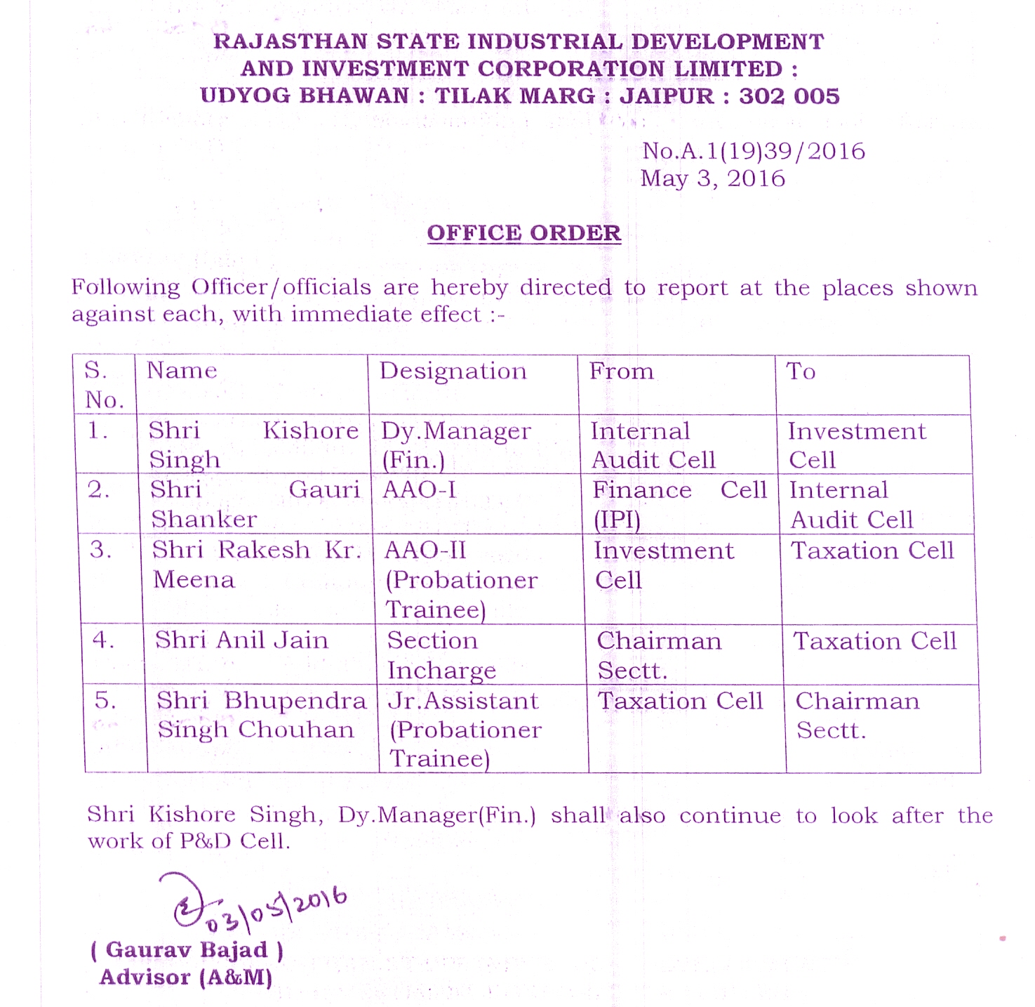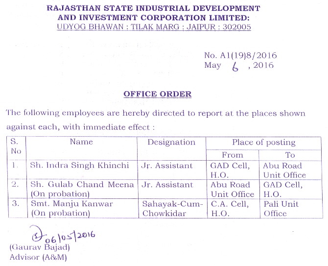 | 26. | Transfer Order | 06.05.2016 | 06.05.2016 |