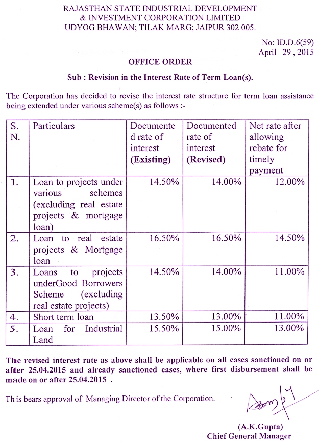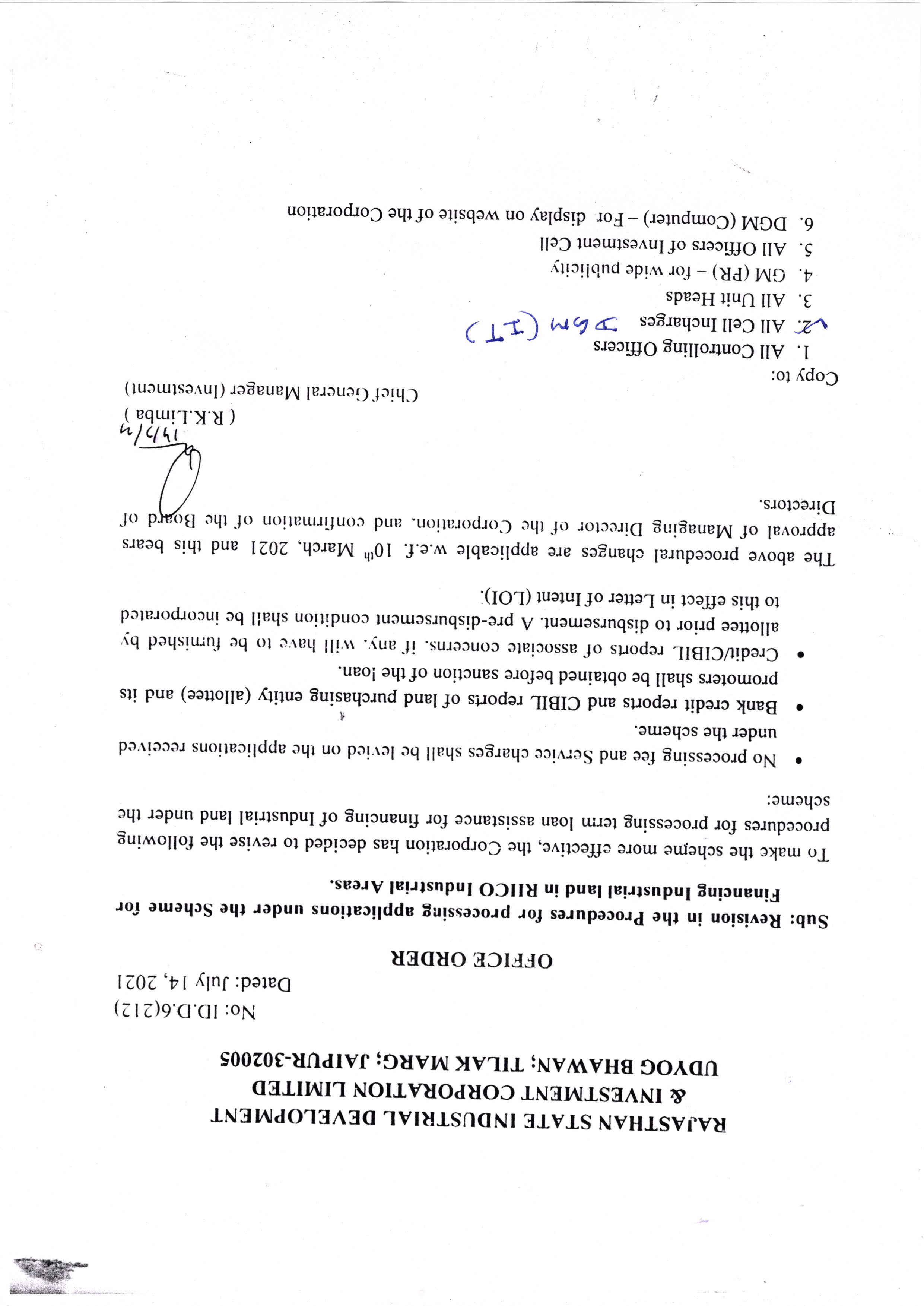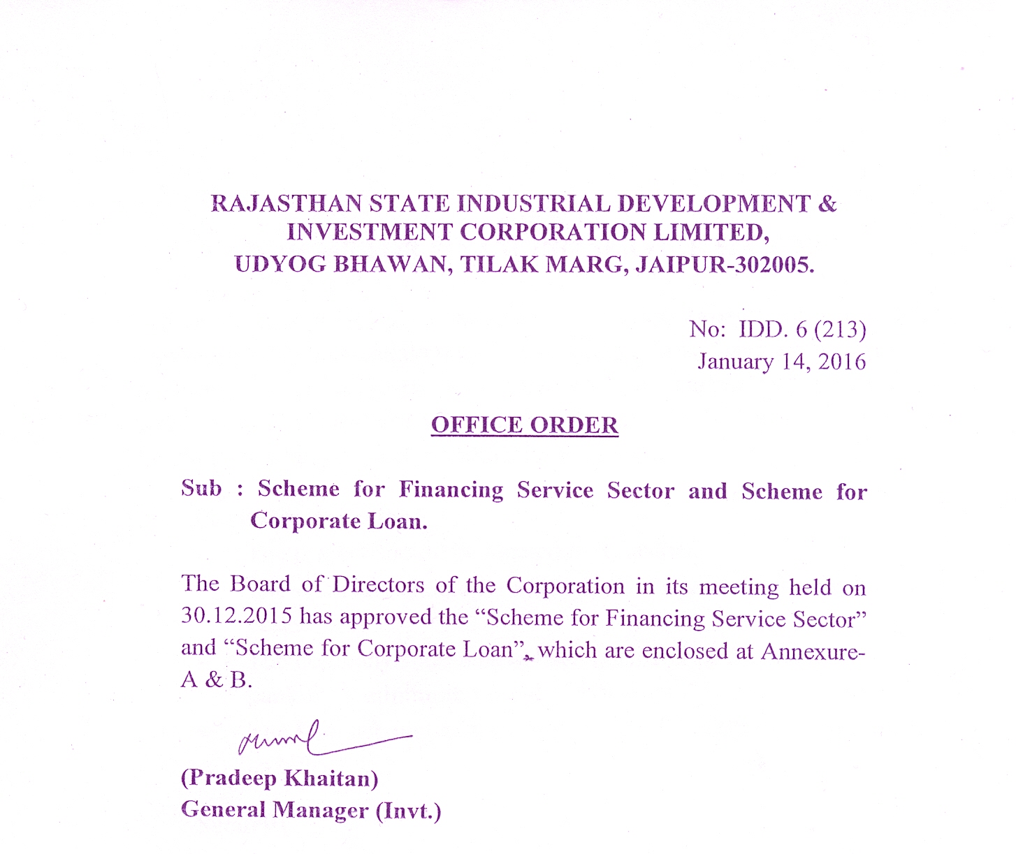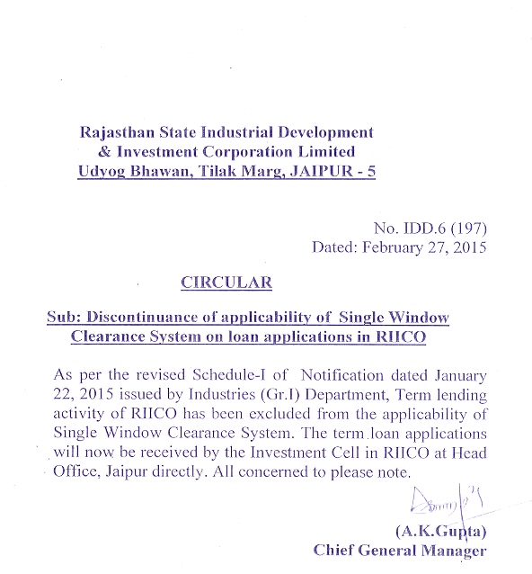 Discontinuance of applicability of Single Window Clearance System on loan applications in RIICO