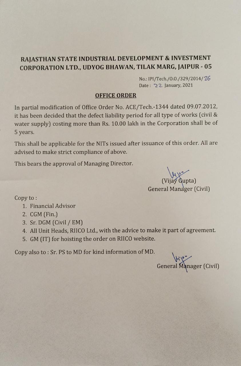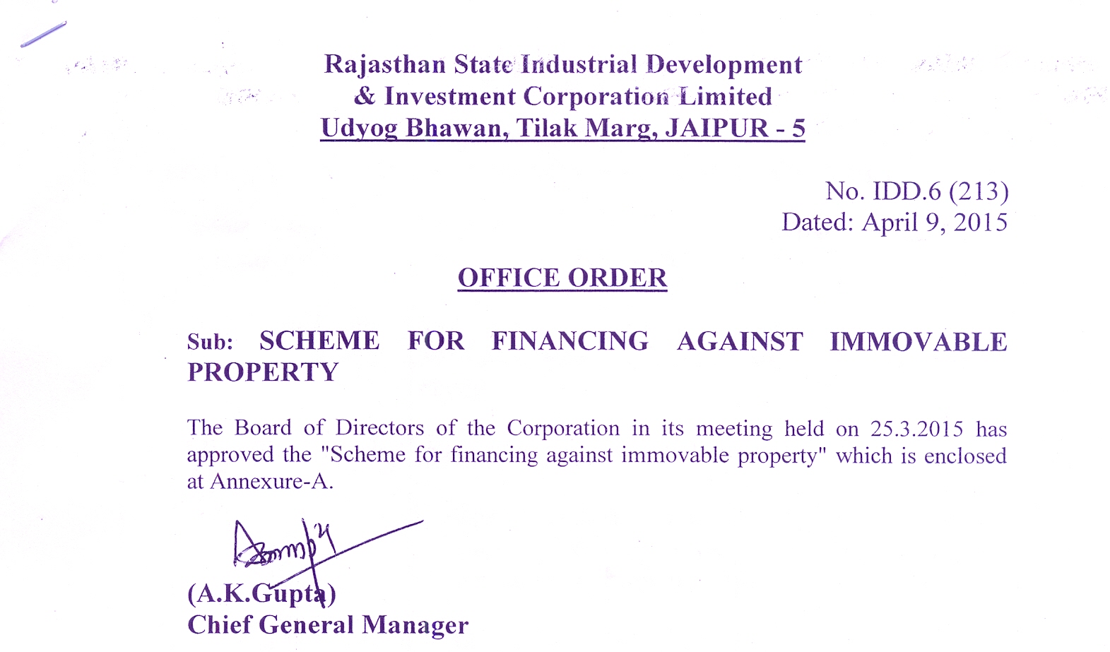 Sanction for carrying out works of Construction of RIICO office building under the head Fixed Assets at I/A Dhoinda, Unit office Rajsamand. |