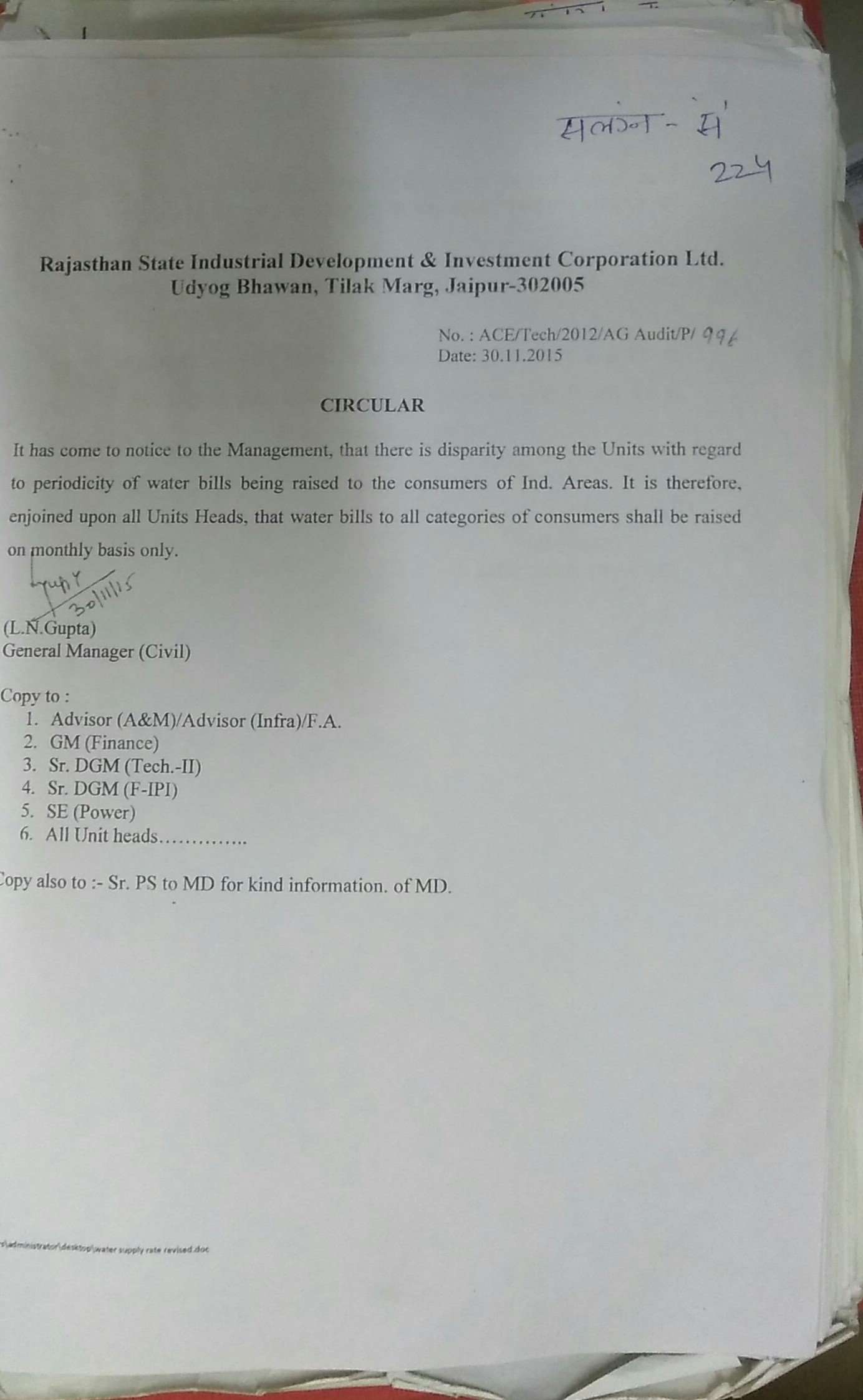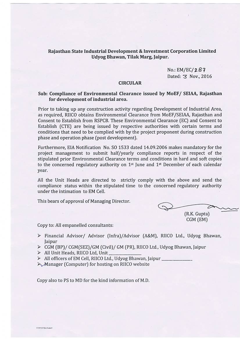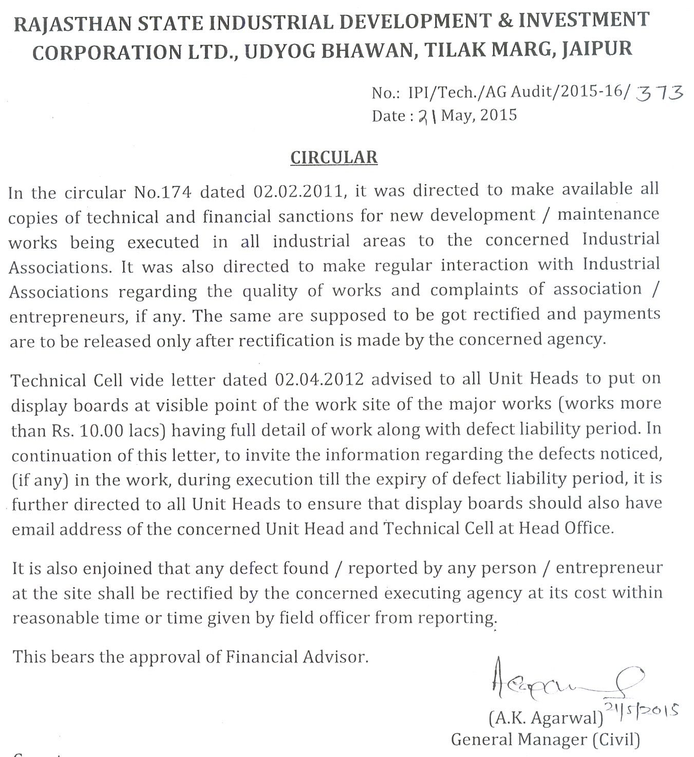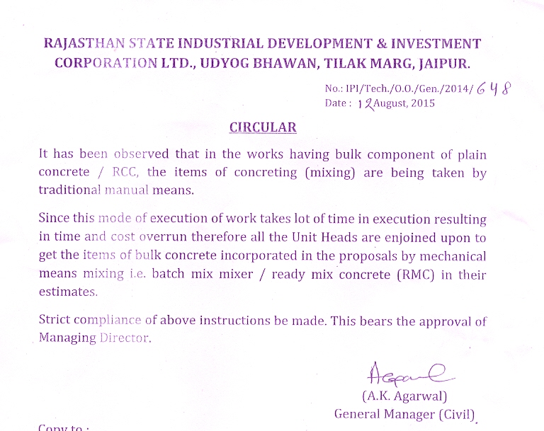 Additional Administrative Sanction for Construction of CC Roads & Culverts at I/A Barmer Phase-I & II , Unit office Balotra. |