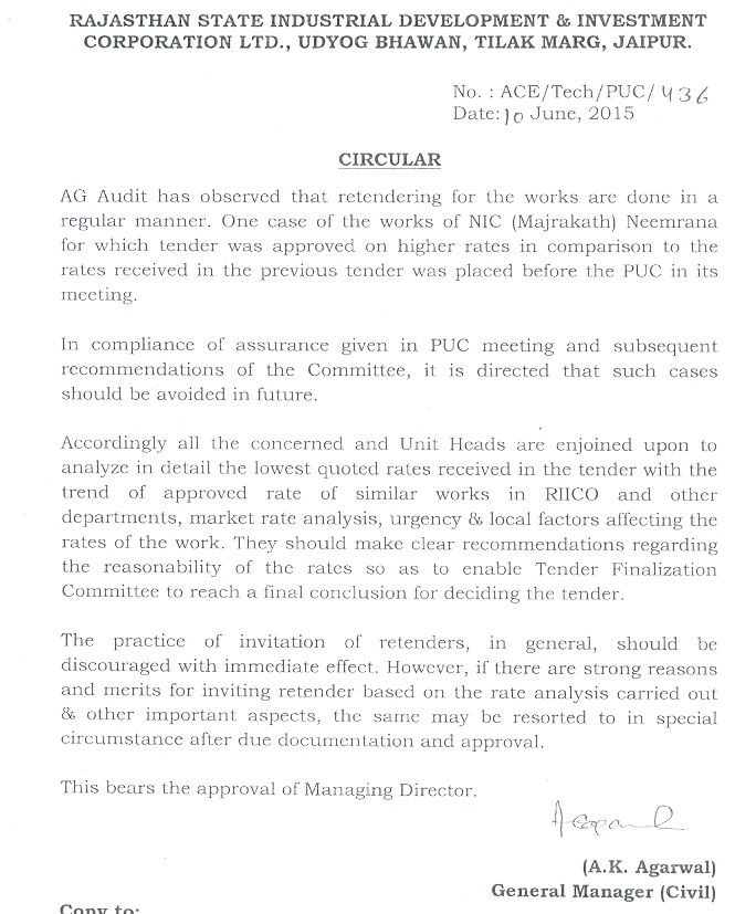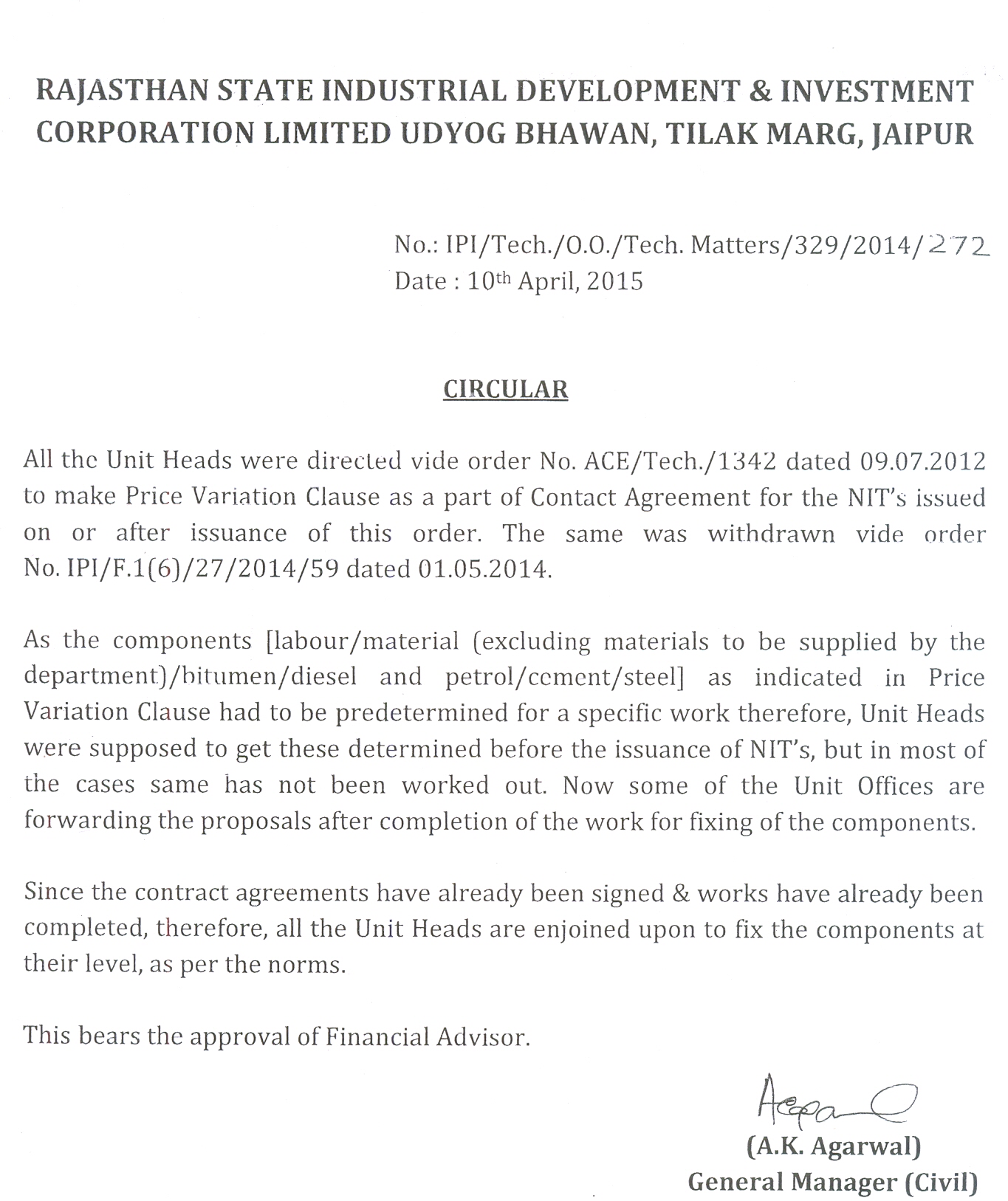 Circular: Price Variation Clause of Contract Agreement for the NIT
