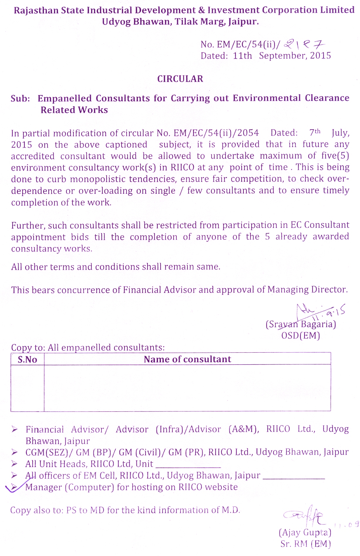 Empanelled Consultants for Carrying out Environmental Clearance Related Works