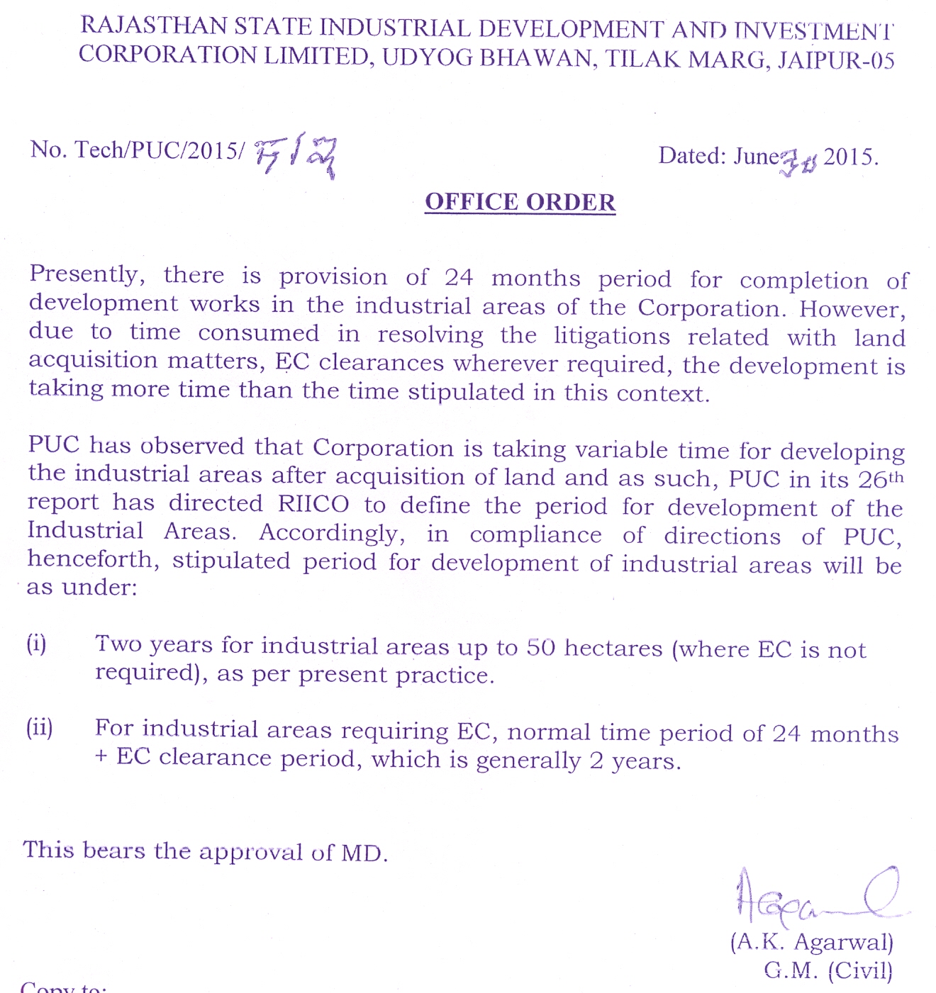 Administrative & Financial Sanction for the work of Construction of outer Periphery Demarcation Pillars at Industrial Area Umaria, Tehsil Dug, Unit Office Jhalawar. |