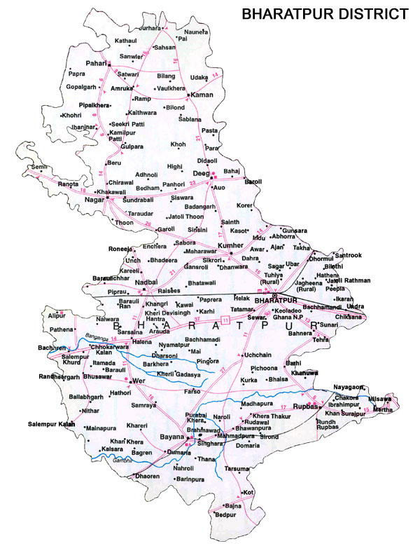 The district is composed of three sub-divisions, viz., Bharatpur, Deeg and Bayana. These sub-divisions have been further divided into ten tehsils namely, Bharatpur, Nadbai, Kumher, Bayana, Roopbas, Weir, Deeg, Kaman, Nagar and pahari and nine panchayat samitis.