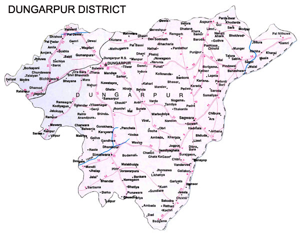 The district is located in the southern part of Rajasthan. The district Udaipur and Banswara lie in north and east of Dungarpur district respectively. On south and west, it is surrounded by the borders of the neighbouring state of Gujarat