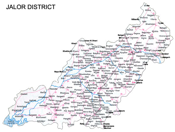 Jalore district is surrounded by Barmer on the North-West, Sirohi on the South-East, Pali on the North-East and Banaskantha district of Gujarat on the South-Western part of Rajasthan.