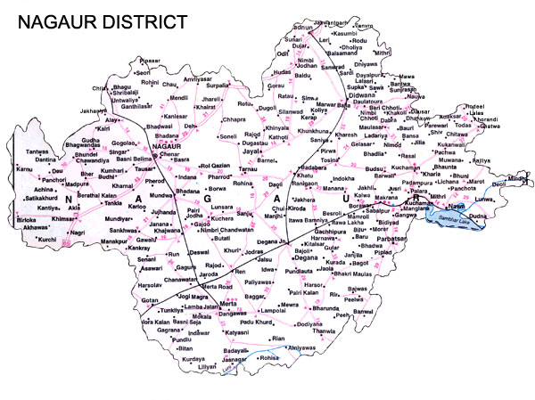 Nagaur town in the district is connected by a broad gauge line with Jodhpur, Jaipur, Bikaner and Delhi. Total length of railway line within the district is 384 km.