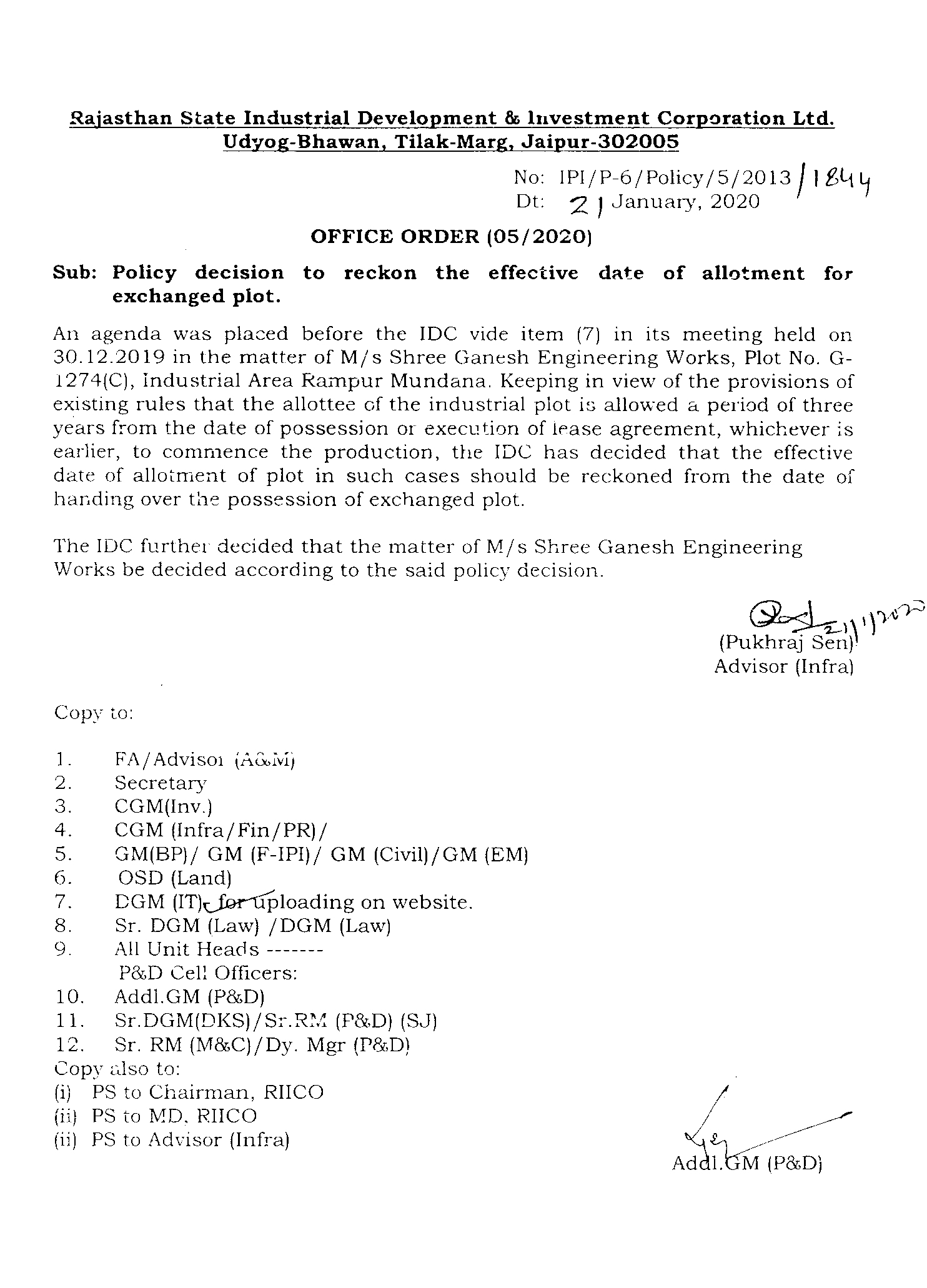 To ensure handing over physical possession of the plot to the allottees in compliance of the provisions of Rule-8 of RIICO Disposal of Land Rules. 1979 |