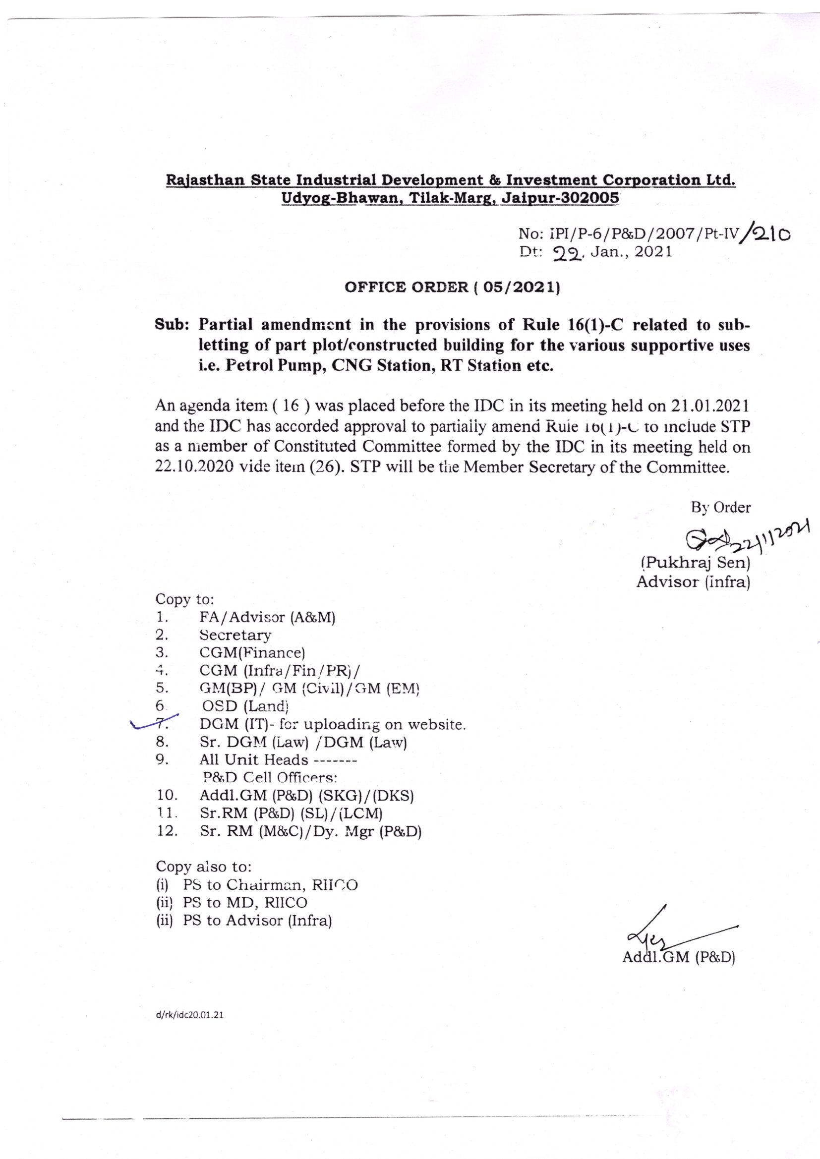 Ammendment/Partial Ammendment in the existing provision of Rule 21, Rule 23-C and Rule 24(3)(2) of RIICO Disposal of Land Rules, 1979 |