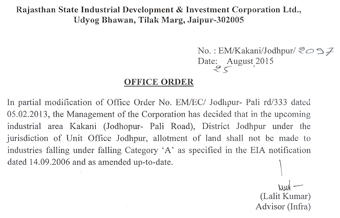 EIA Notification of Industrial areas Borawas-Kalawa & Devka, distt. Barmer |