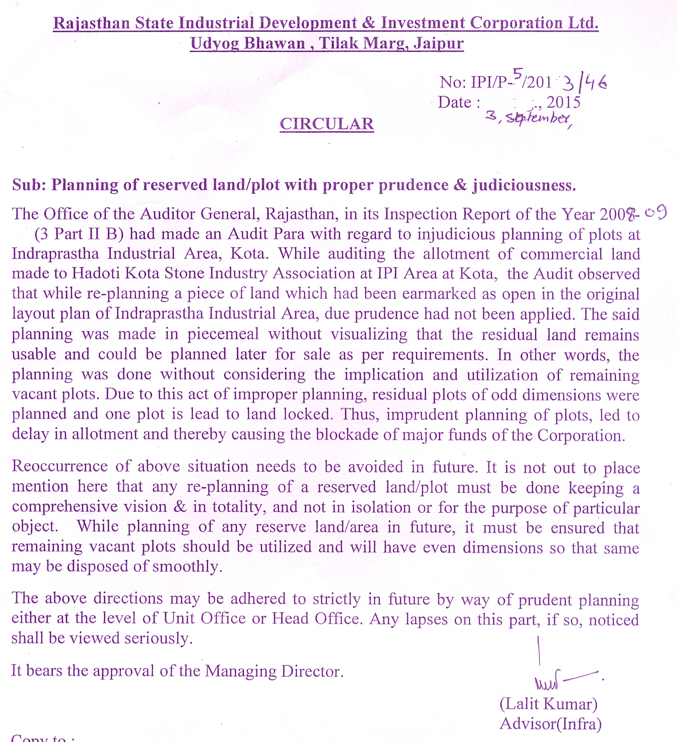 Re-constitution of Committee for allotment of land to Educational Institute under Rule 3(E) of RIICO Disposal of Land Rules, 1979. |