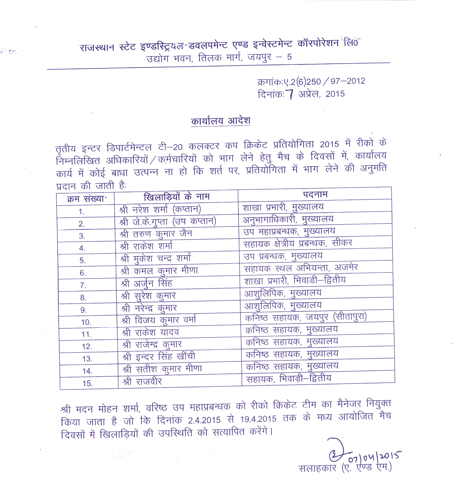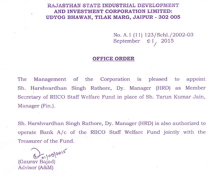| 48 | Appoint Member Secretary of RSWF | 01.09.2015 | 01.09.2015 | Advisor (A&M) |
