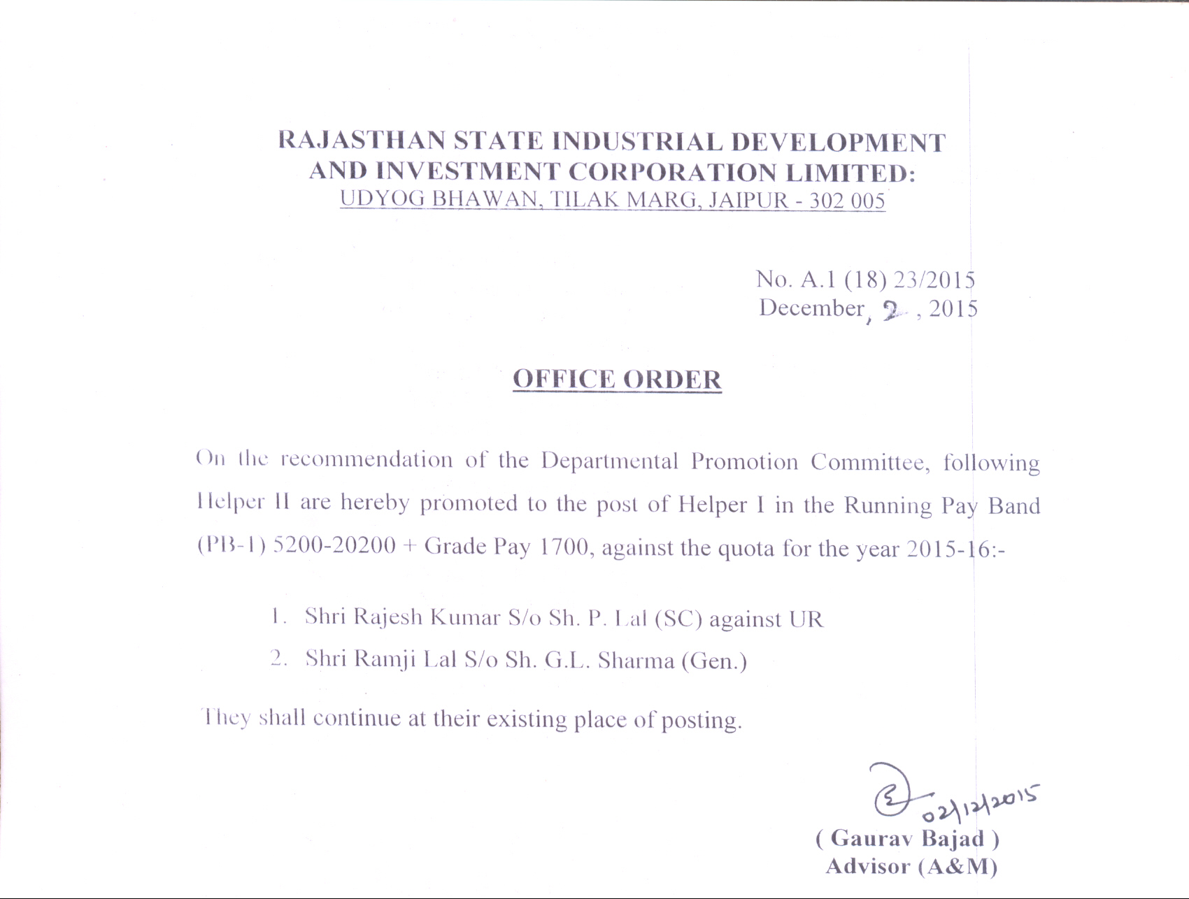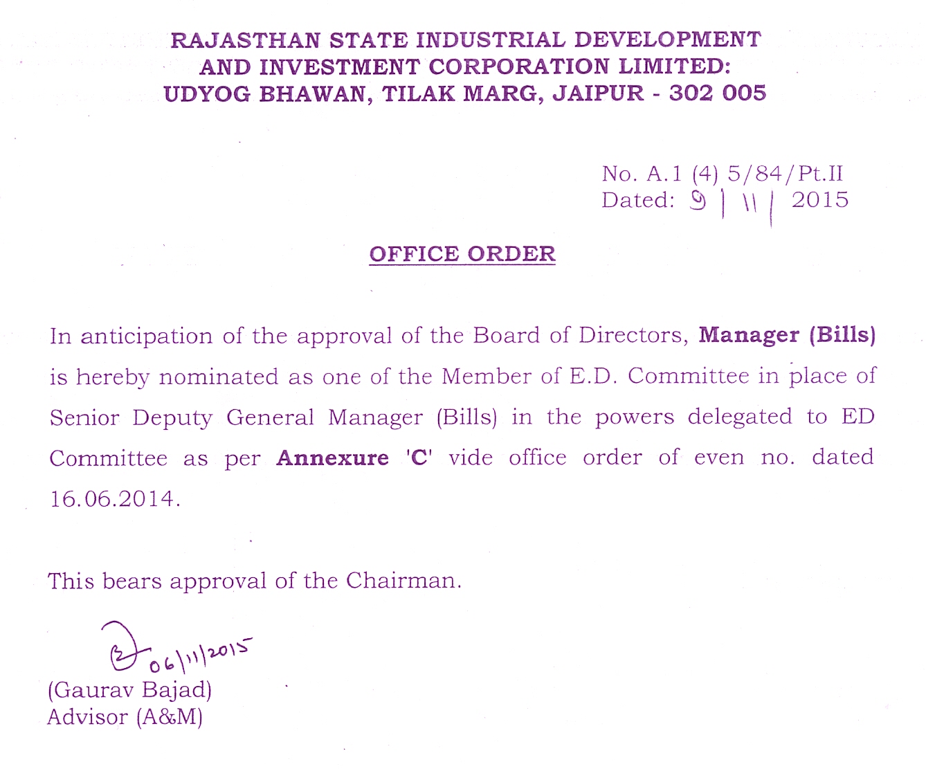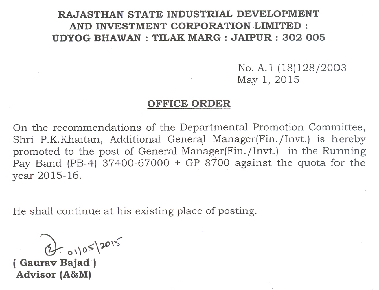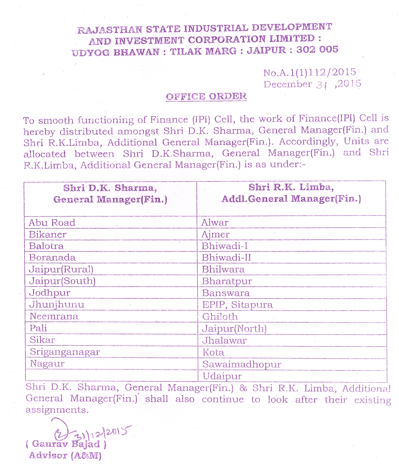 | 57 | Units allocated between GM (F) and AGM(F) | 21.12.2015 | 01.01.2016 | Advisor (A&M) |