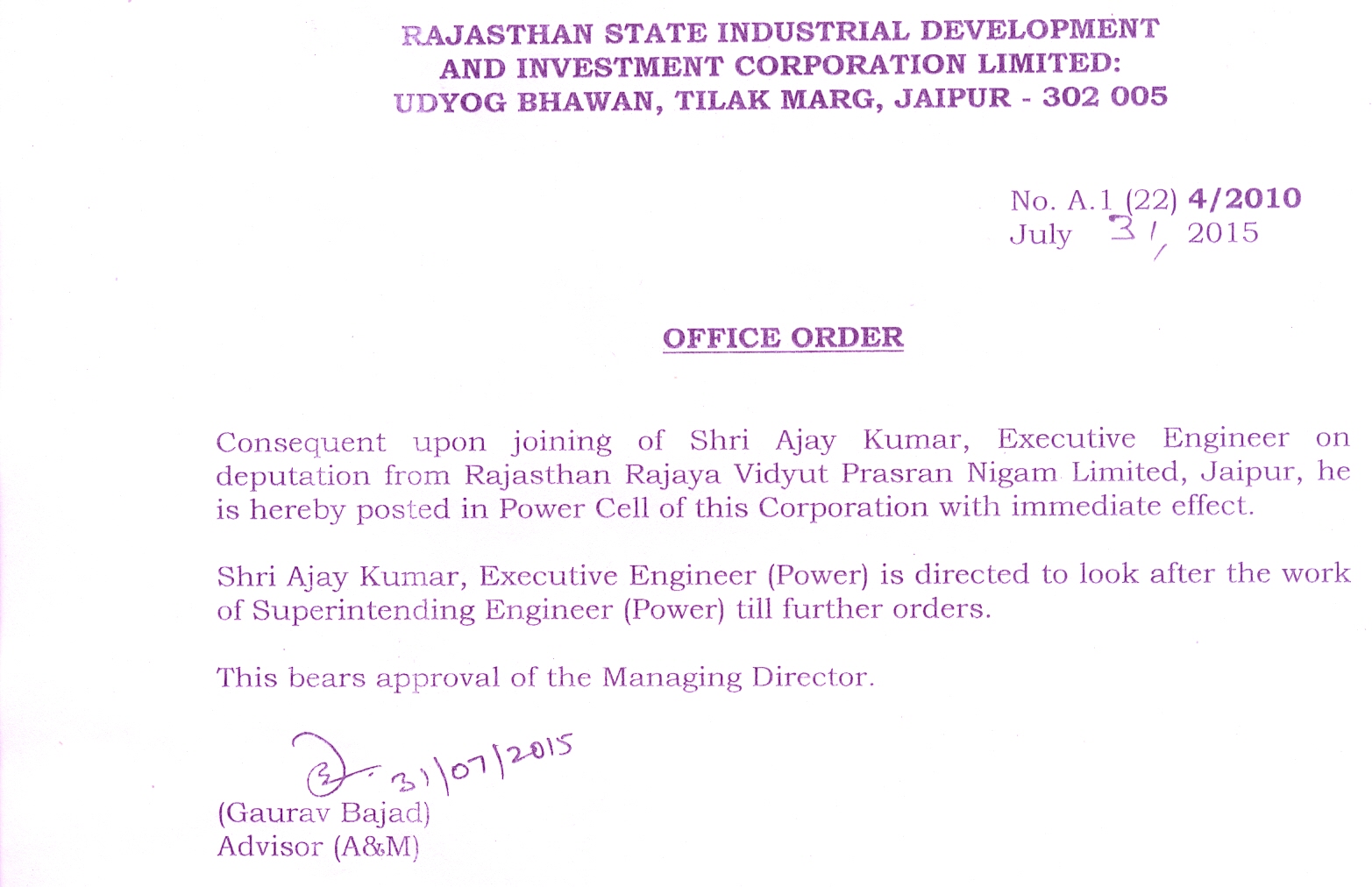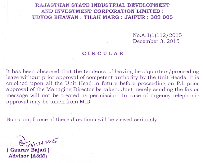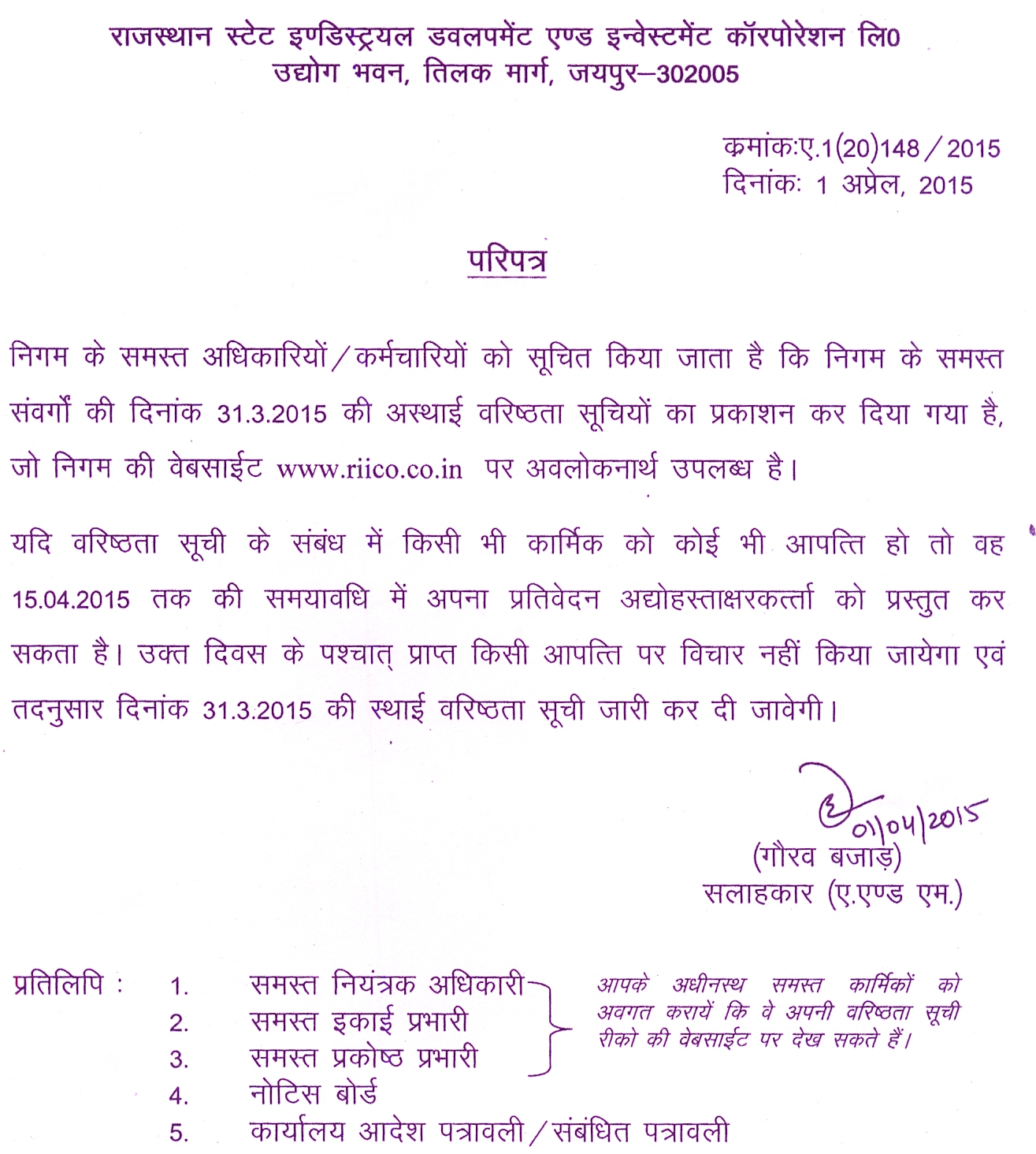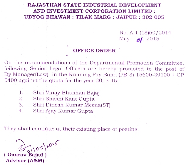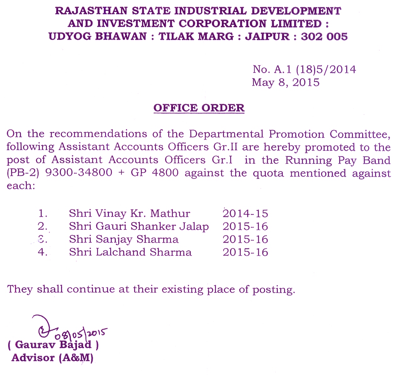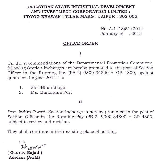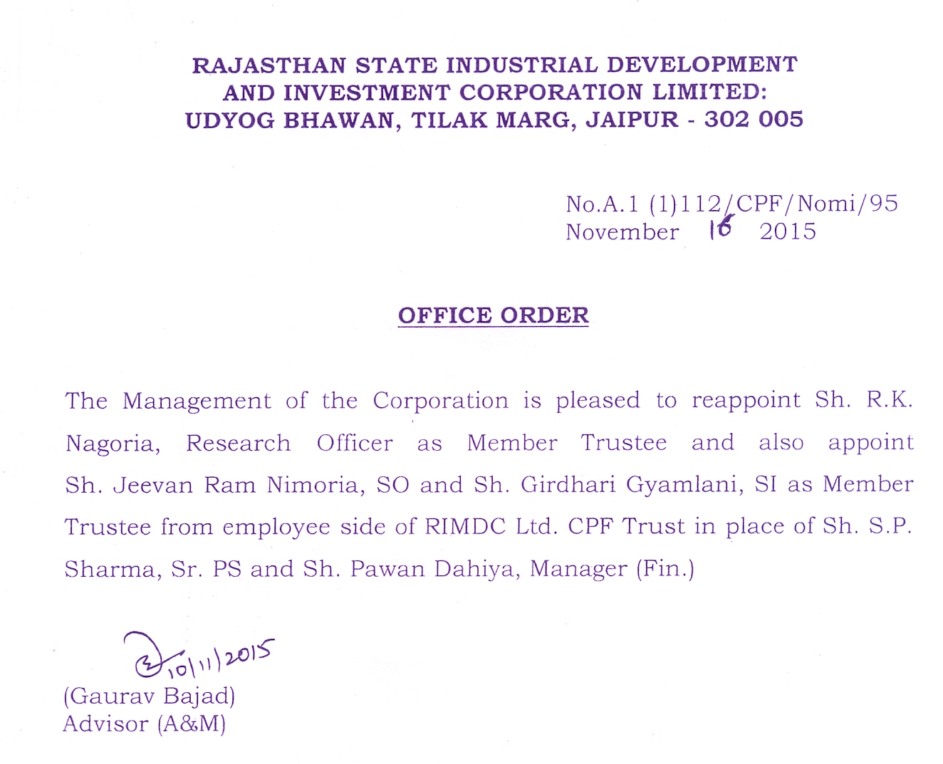 | 57 | Units allocated between GM (F) and AGM(F) | 21.12.2015 | 01.01.2016 | Advisor (A&M) |