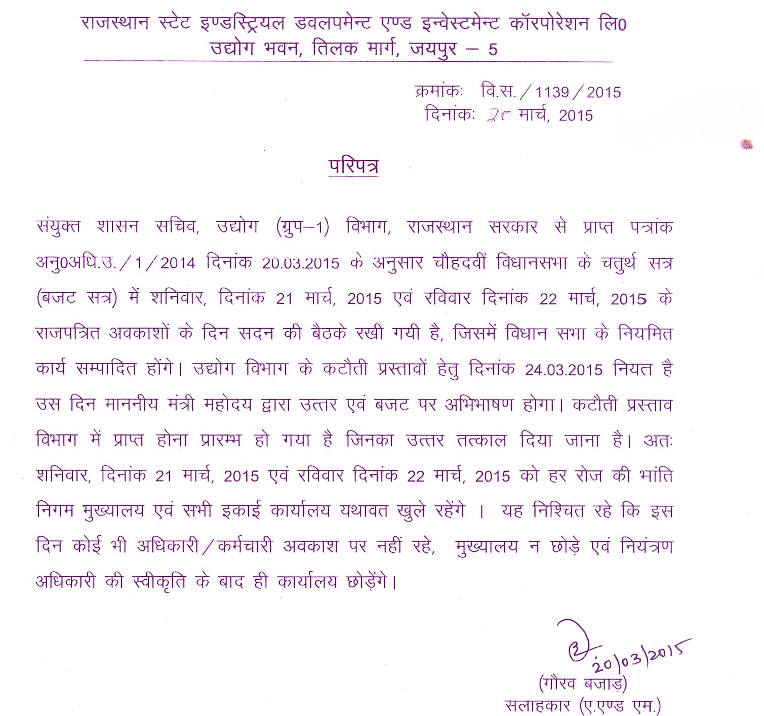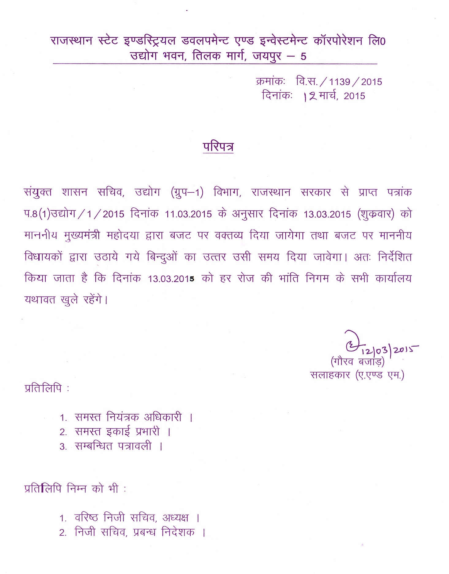 | 53 | Revised Estimates for the Year 2015-16 and Budget Estimates for the year 2016-17 | 19.11.2015 | 20.11.2015 | Advisor (A&M) |