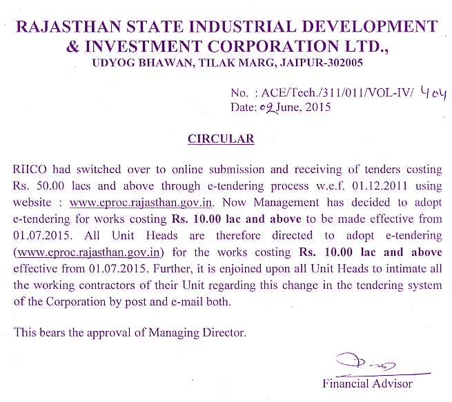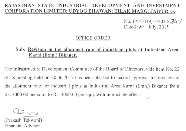 Revision in the allotment rate of industrial plots at industrial area Karni (Ext.), Bikaner |
