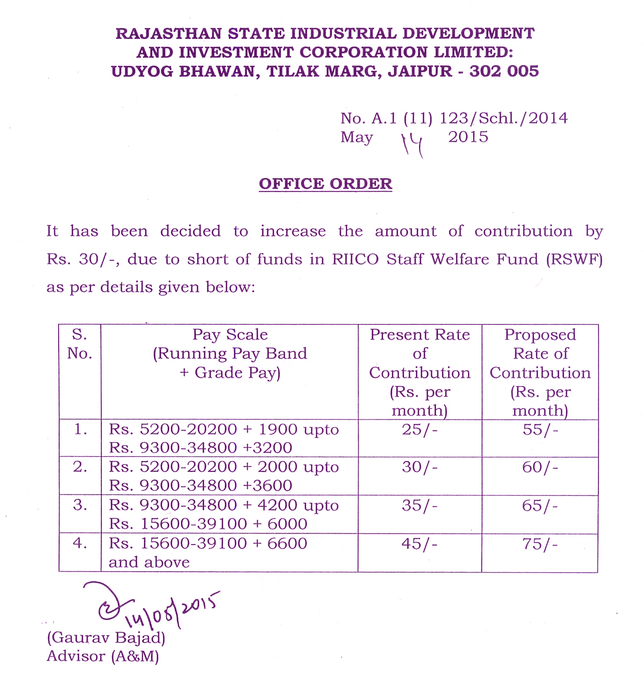 Increase the amount of contribution of RIICO Staff Welfare Fund |