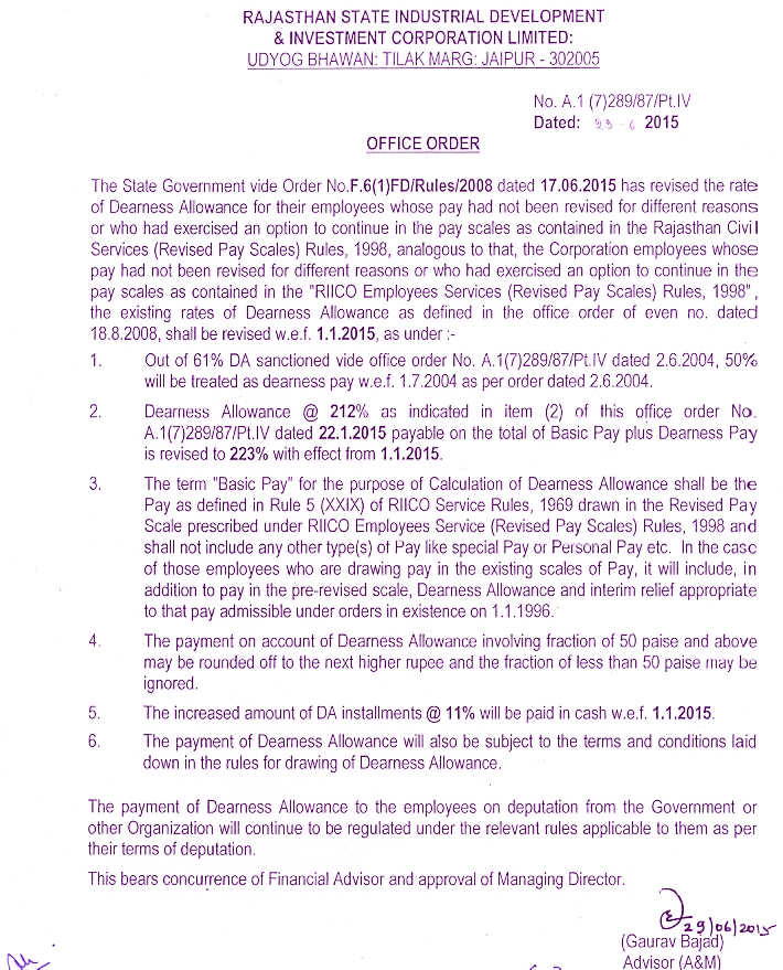 Revised the rate of Dearness Allowance for their employees whose pay had not been revised |