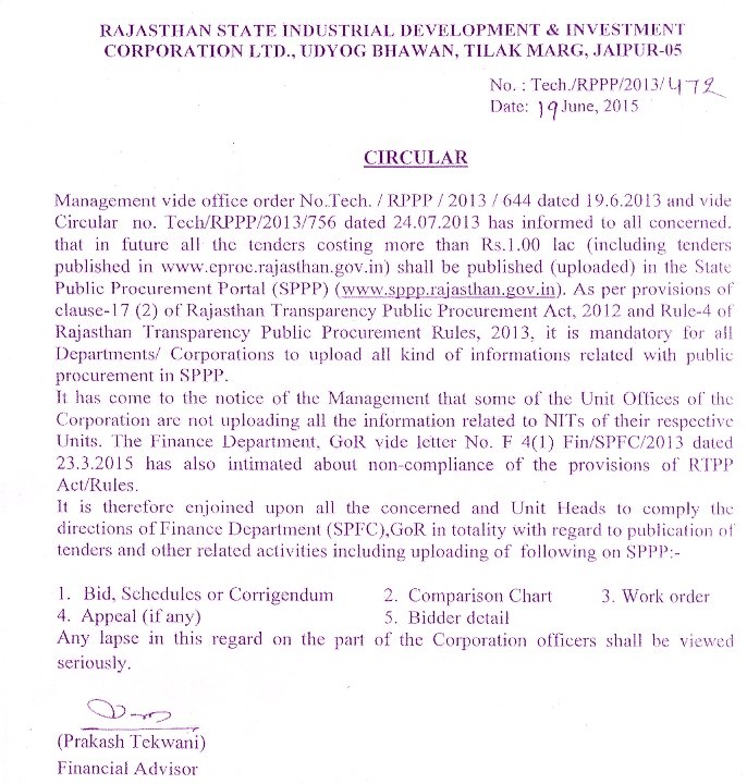 Circular: Regarding NITs published on State Public Procurement Portal (SPPP) |