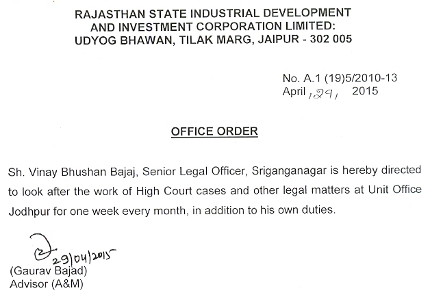 Look after the work of High Court cases and other legal matters at Unit Office, Jodhpur |