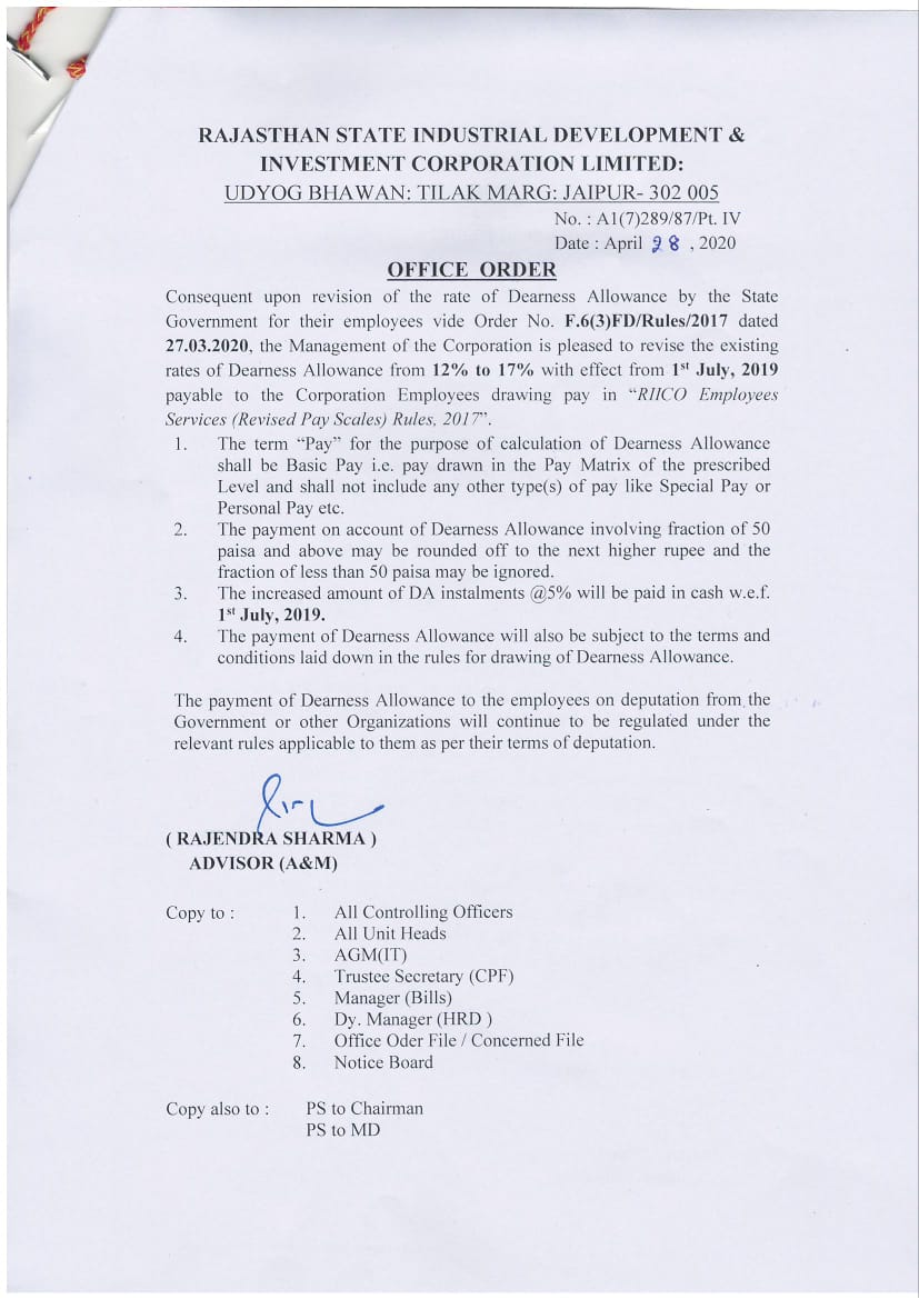 Amendment in Rule 31 of RIICO Service Rules, 1969. |
