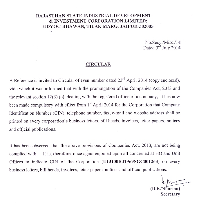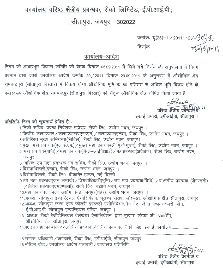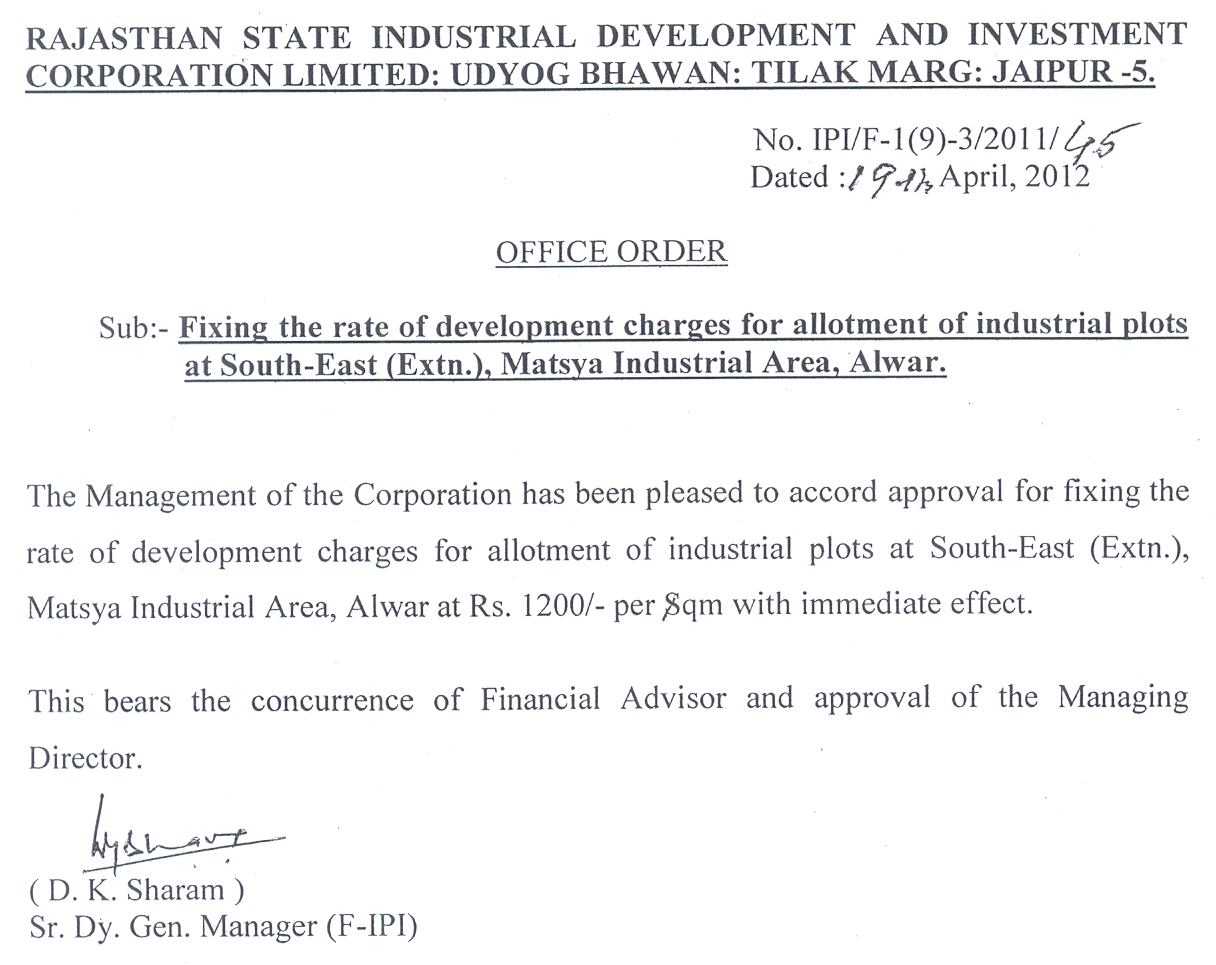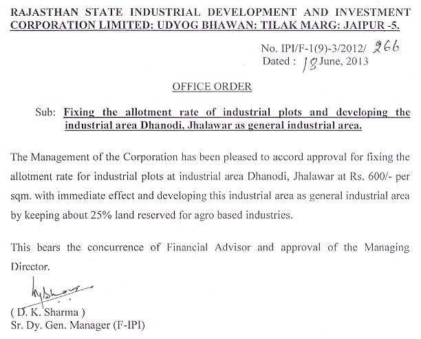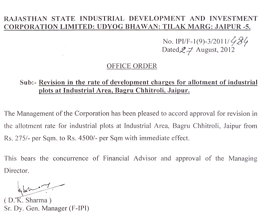 Revision in the allotment rate of industrial plots at Industrial Area,Roopangarh, Kishangarh (Ajmer) |