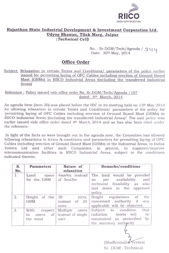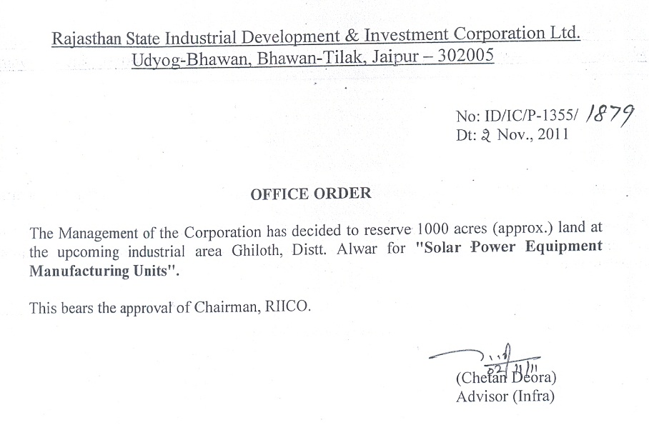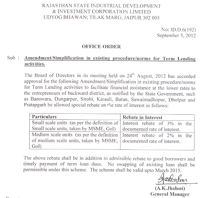 Implementation of the Rajasthan Industrial and Investment Promotion Policy-2010 |