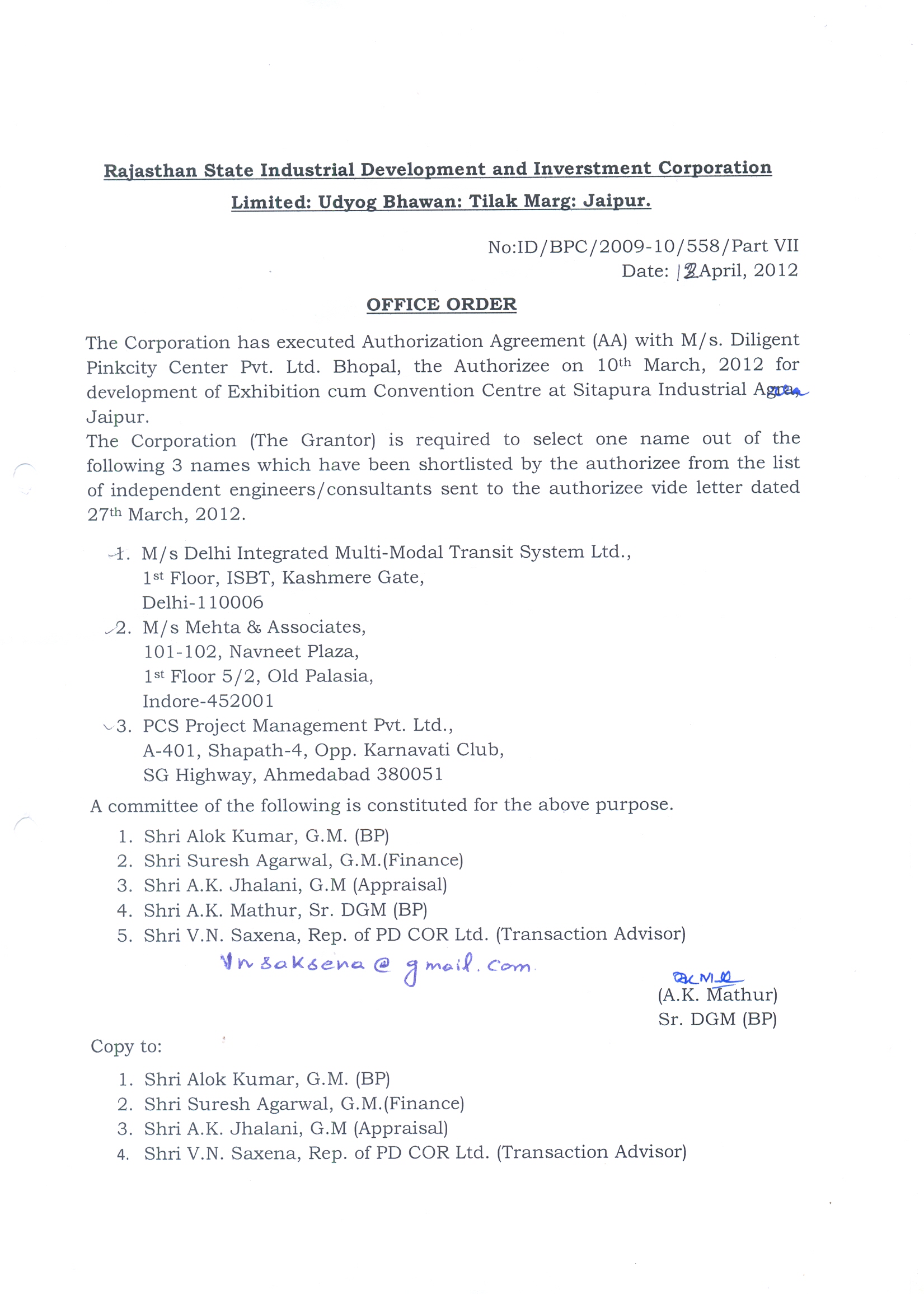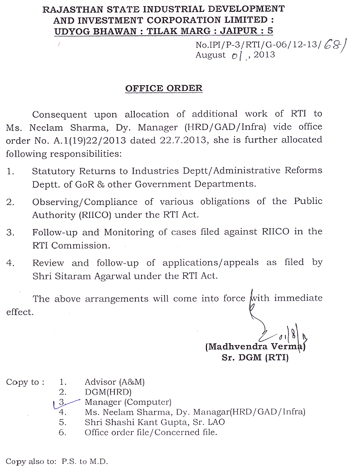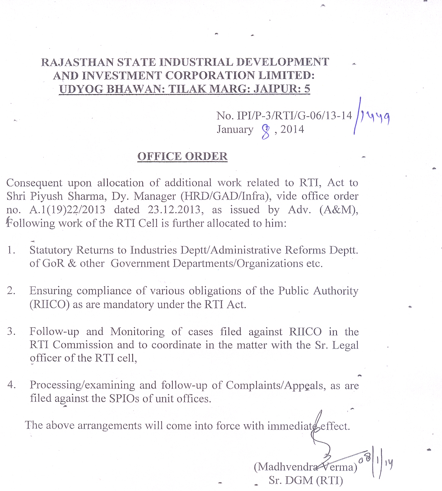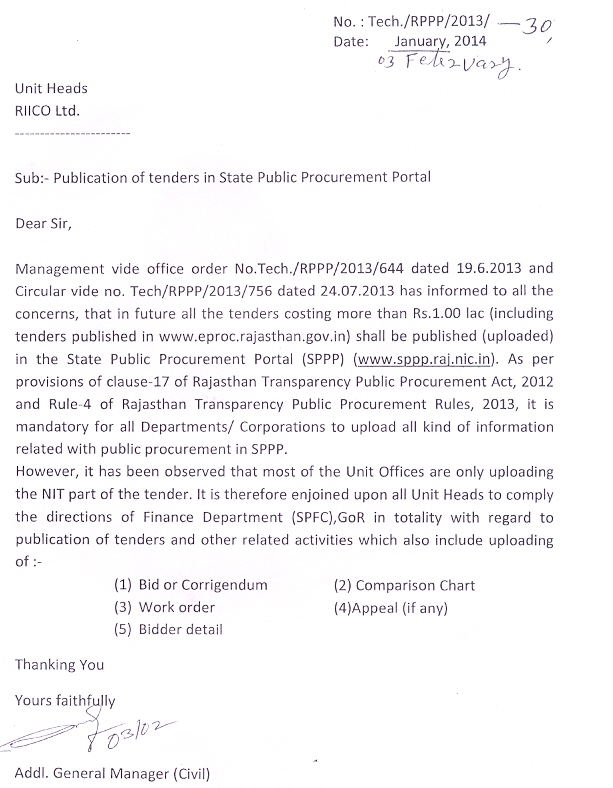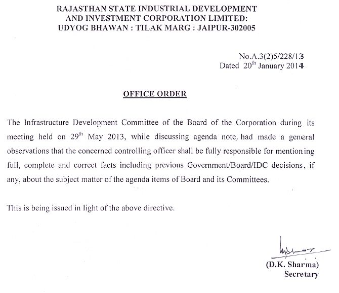 Office Order related to Rajasthan Transparency in Public Procurement Act.2012 |