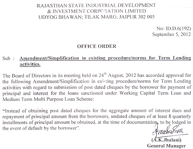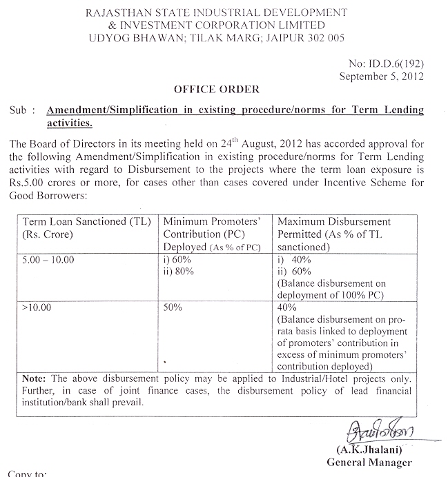 Amendments/Simplification in existing procedure/norms for Term Lending Activities |