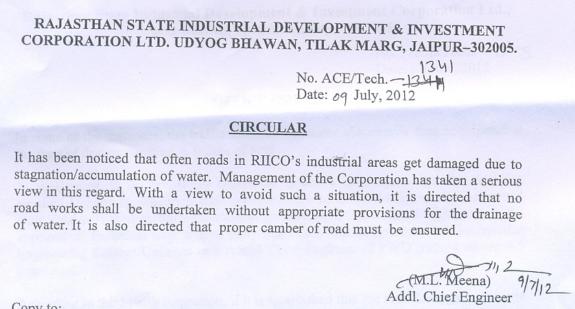 Roads of RIICO's I.A.'s get damaged due to stagnation/accumulation of water |