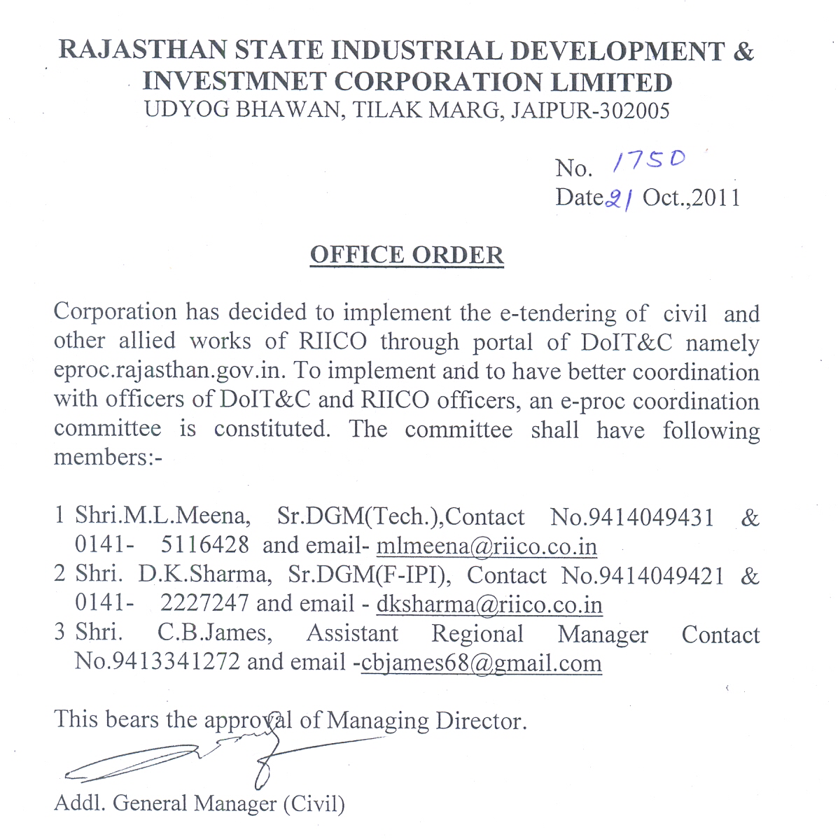 Implement the e-tendering of civil and other allied works of RIICO through eproc.rajasthan.gov.in. |
