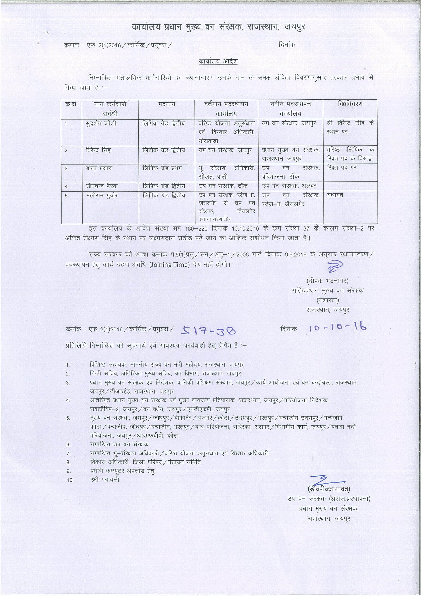 Transfer Posting of AAO/LDC/Forester/ Forest Guard/Driver/Amin Order No. 102-28 dt. 10.04.2018