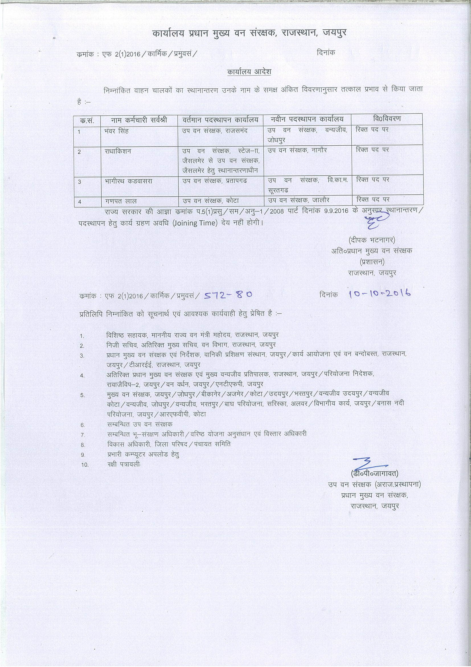Transfer/Posting order of Drivers dt. 10.10.2016
