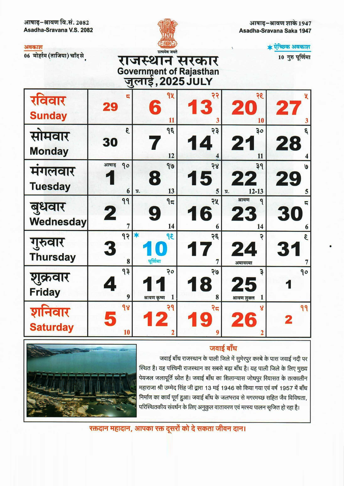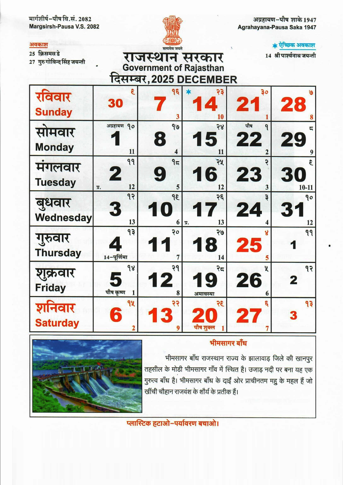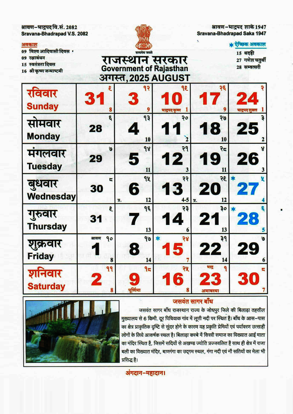 Discover the official Rajasthan Government Calendar 2025! Stay updated with important dates, holidays, and events across Rajasthan.