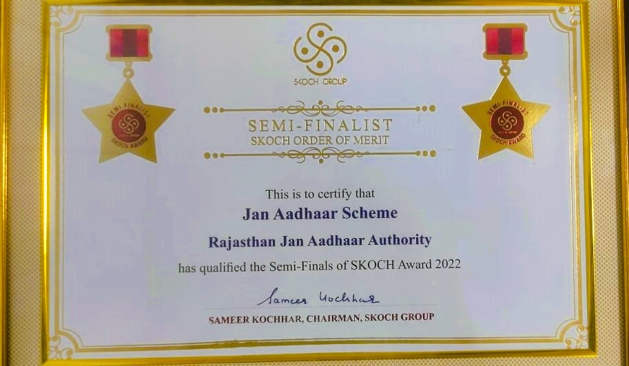 Jan Aadhaar Scheme has qualified the Semi Finals of SKOTCH Award 2022