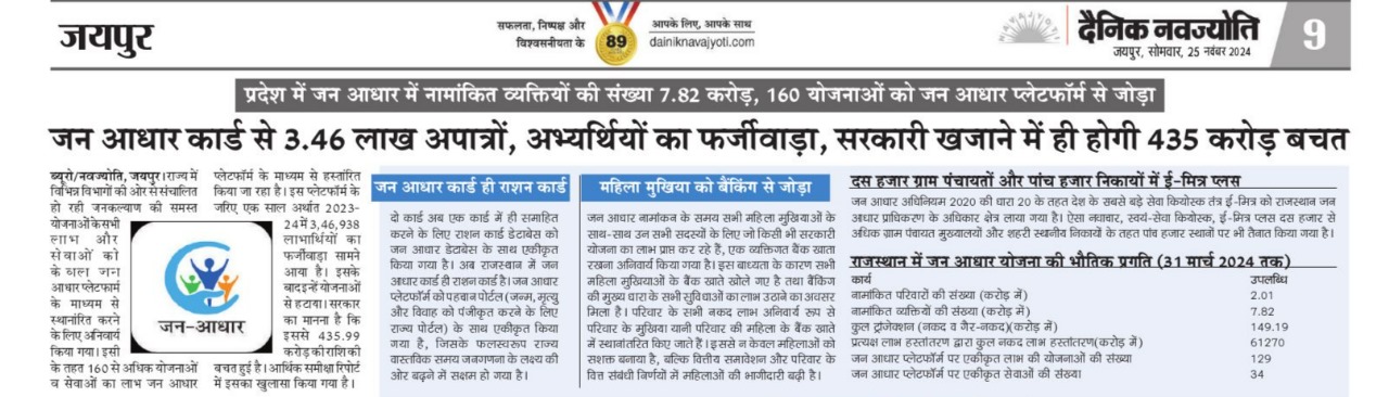 जन आधार कार्ड से 3.46 लाख अपात्रों, अभ्यर्थियों का फर्जीवाड़ा, सरकारी खजाने में ही होगी 435 करोड़ बचत