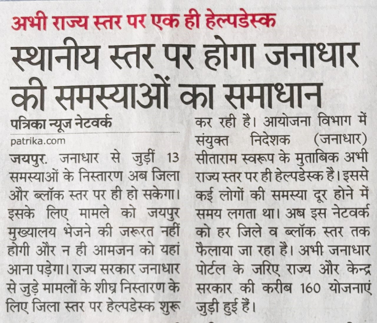 जन आधार योजना ने राष्ट्रीय स्तर पर प्रशंसा हासिल की और डिजीटेक कॉन्क्लेव और पुरस्कार 2023 में स्वर्ण पुरस्कार प्राप्त किया