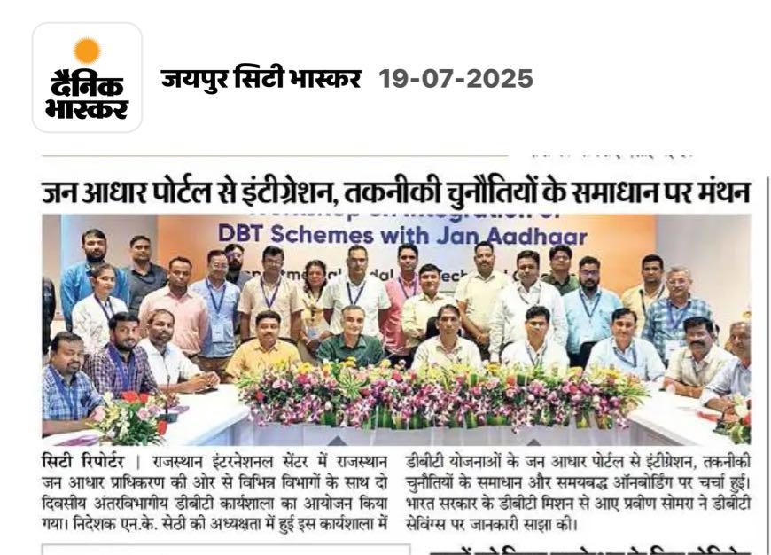 जन आधार के साथ डीबीटी योजनाओं के एकीकरण पर कार्यशाला दिनांक 16 और 17 जुलाई, 2025 को आयोजित की गयी।