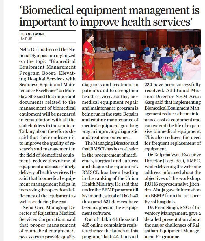 Proper managment of biomedical equipment essential for strengthening health services: MD,RMSCL