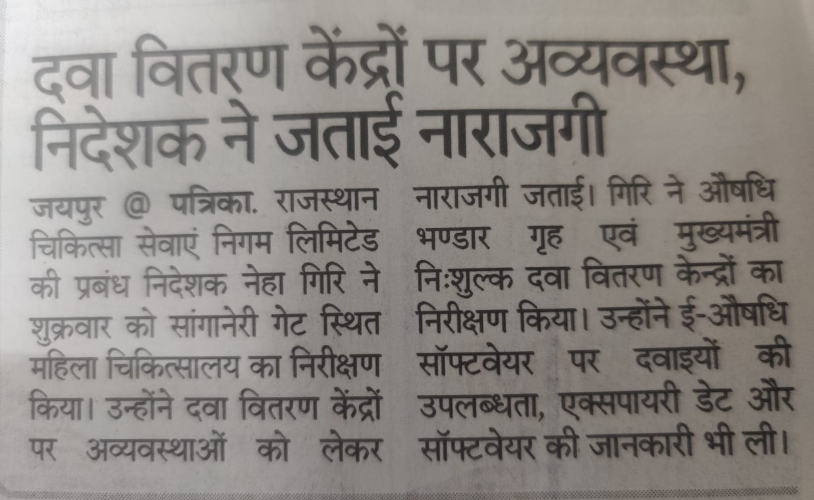 On Friday 01-03-2023 MD RMSCL Neha Giri ,IAS inspected the Mahila Hospital and Director expressed displeasure over the chaos at drug distribution centers