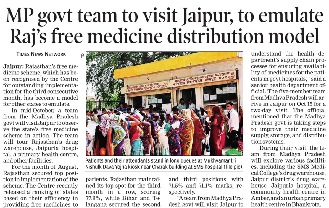MP Goverment team to Visit Jaipur, to emulate Raj's free medicine distribution model