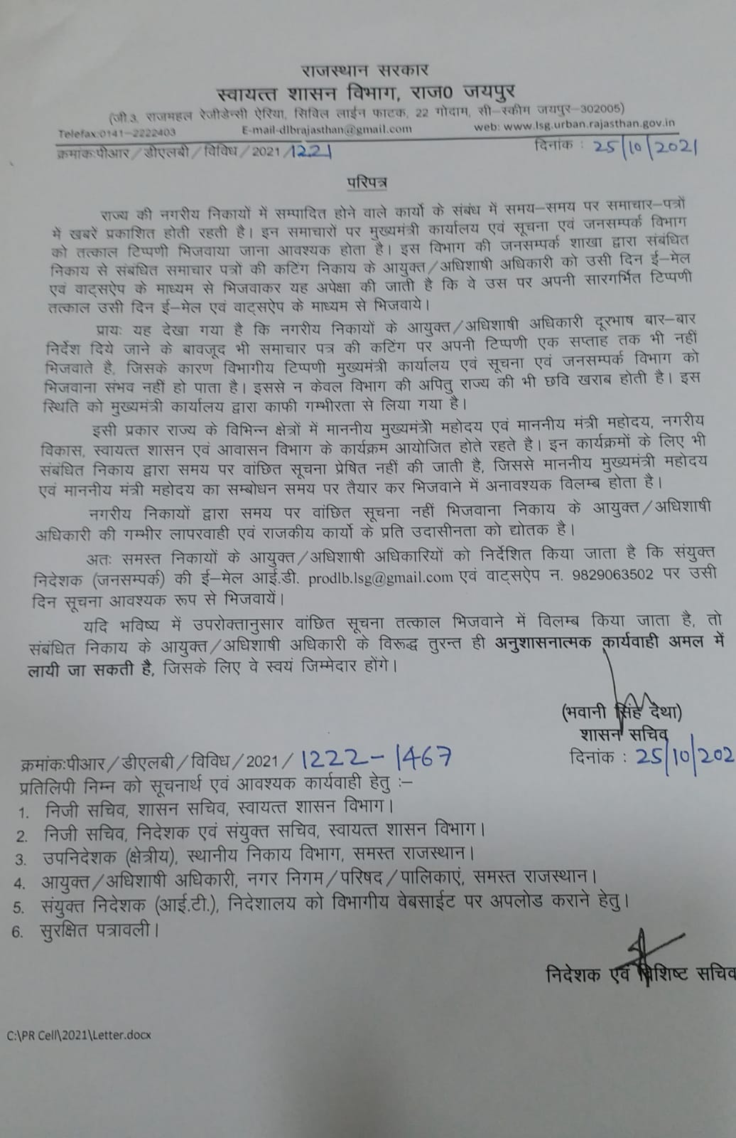| नगर पालिका दलोट को तत्काल प्रभाव से प्रत्याहारित ( Withdraw) किये जाने बाबत | एफ 10 (न.पा. (गठन) ( ) (ब.घो.)डीएलबी / 24/12731 | view | |