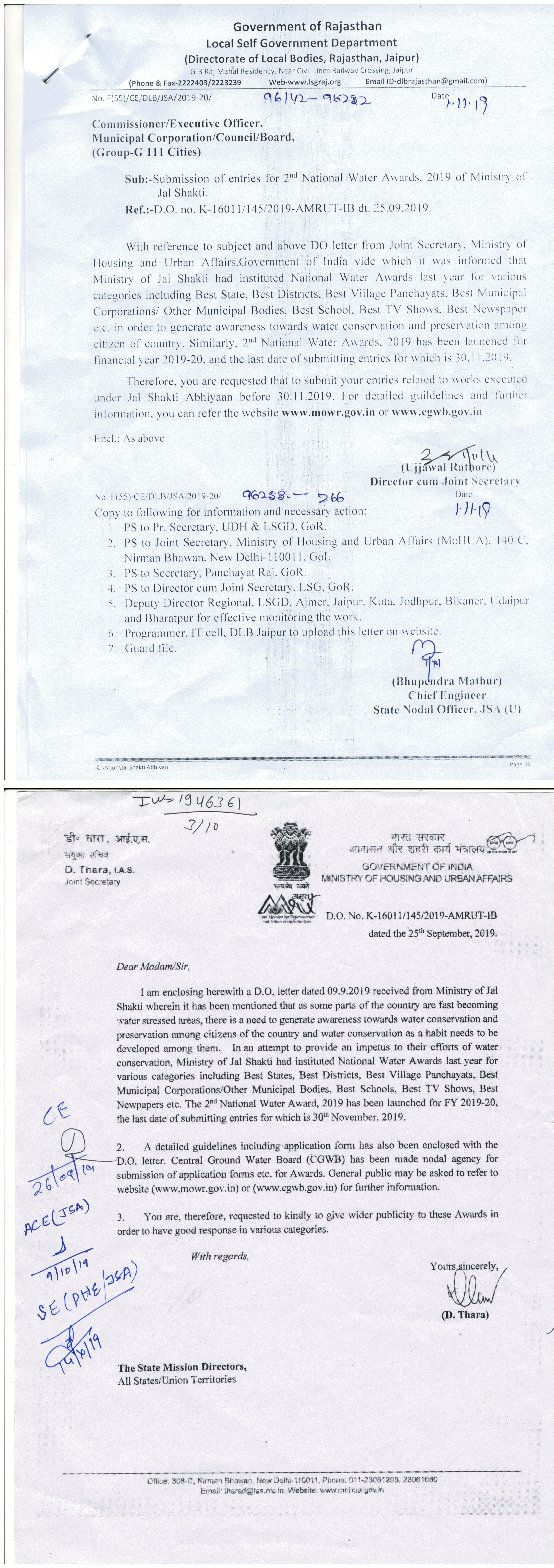 | Submission Of Entries For 2nd National Water Awards. 2019 Of Ministry Of Jal Shakti, no. 96142-96252 Date 01-11-2019 | view | |