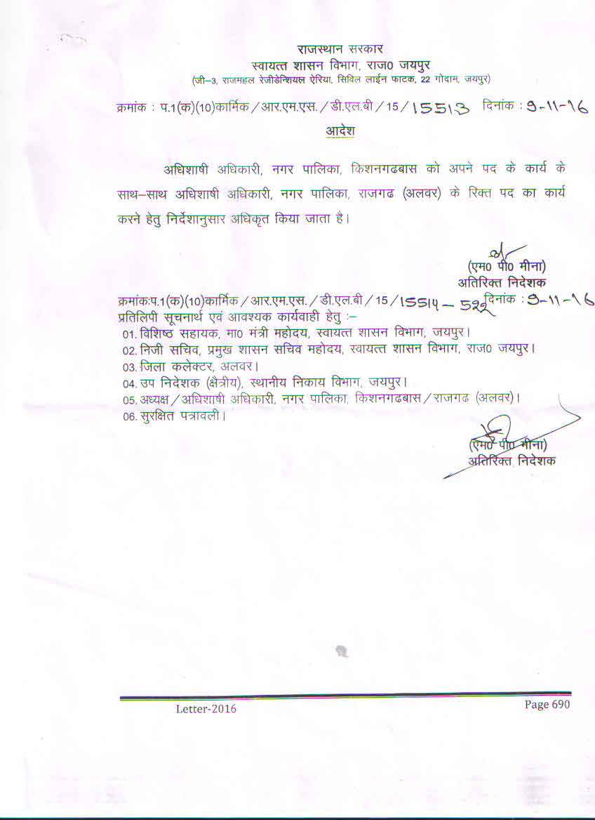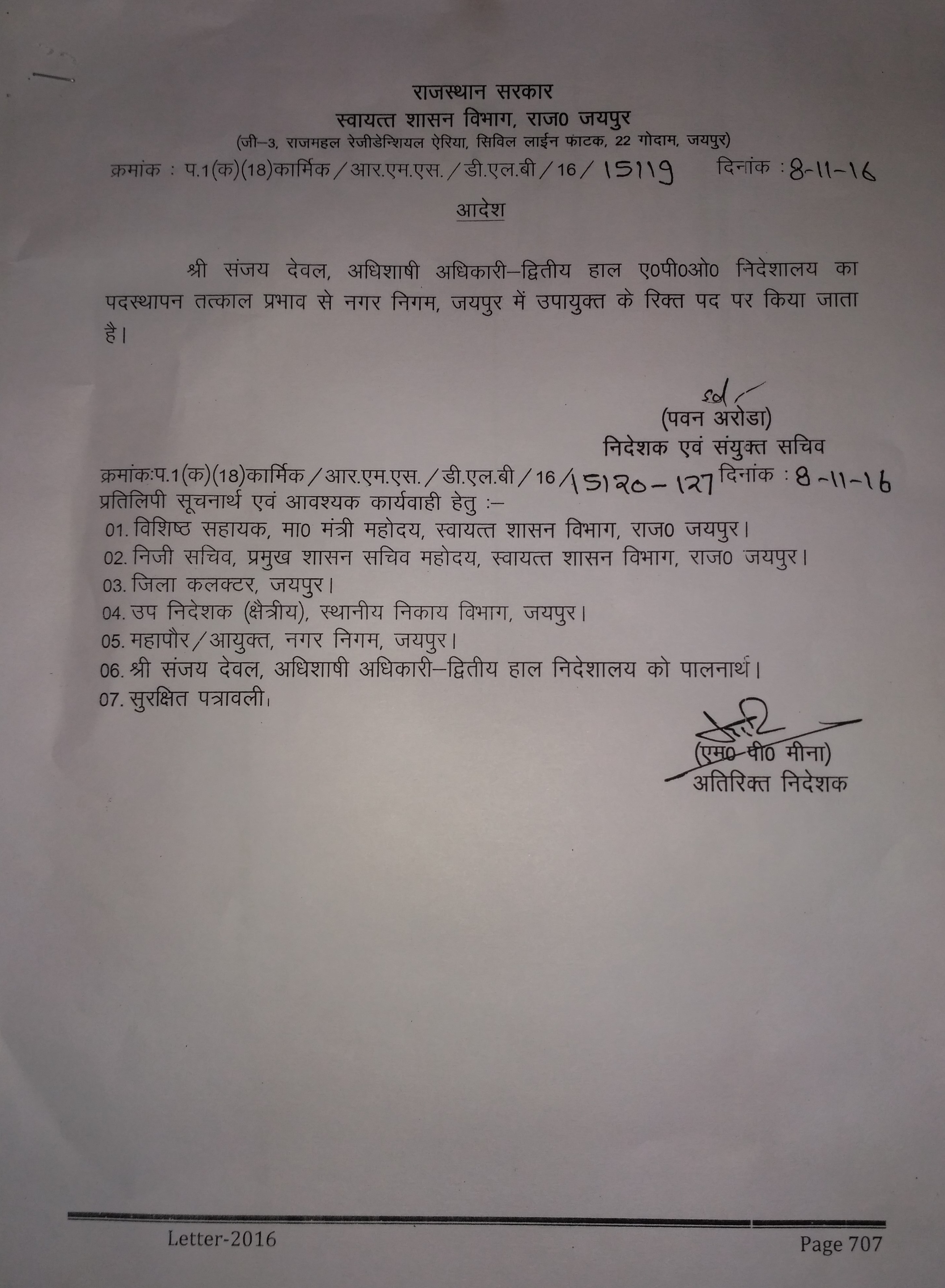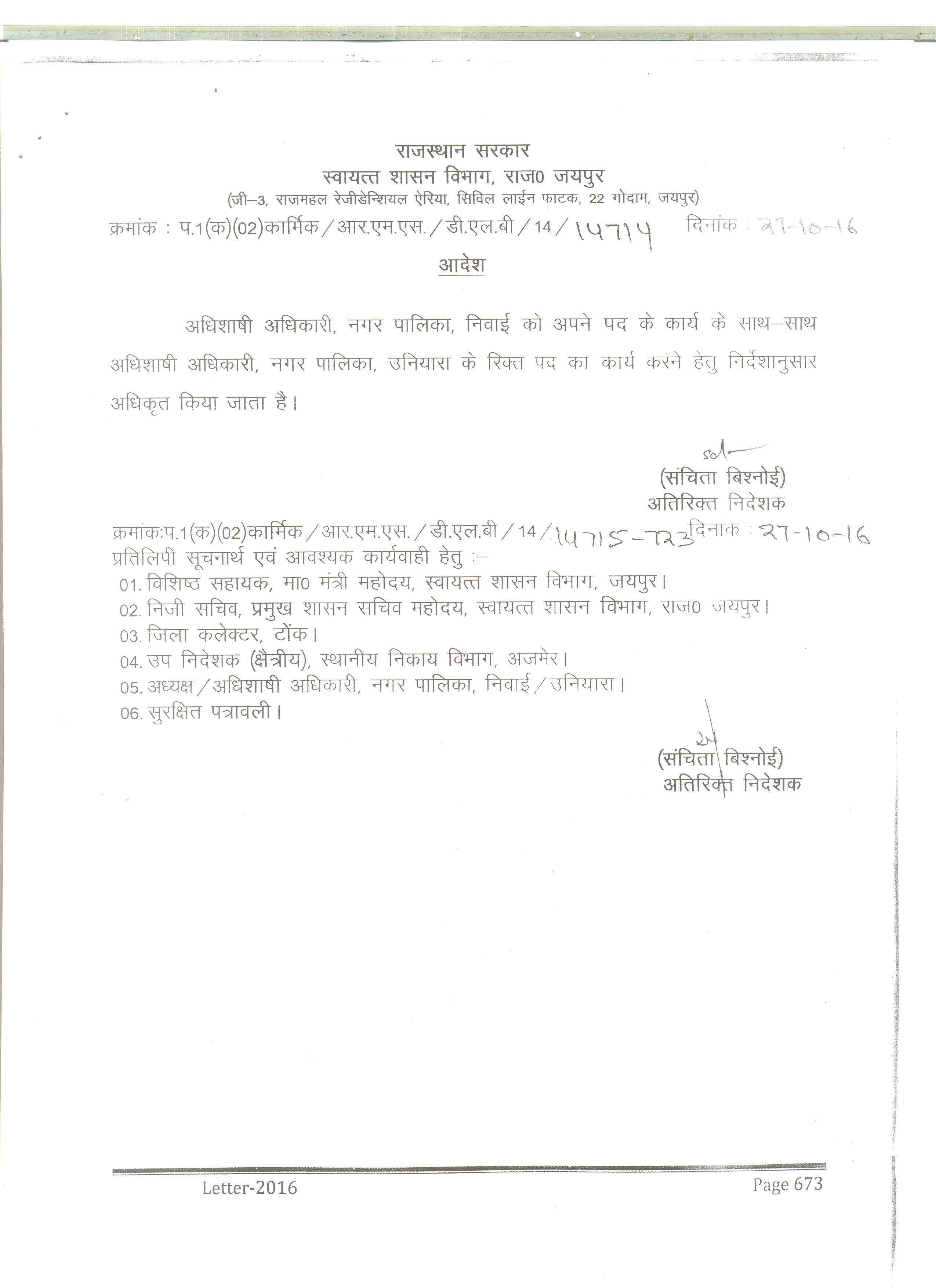 | 37 | Rajasthan with regard to the promotion of officials of the municipality C.C.A Rule 17 regarding the information order no.5928-34 date 7-4-2016 | View |