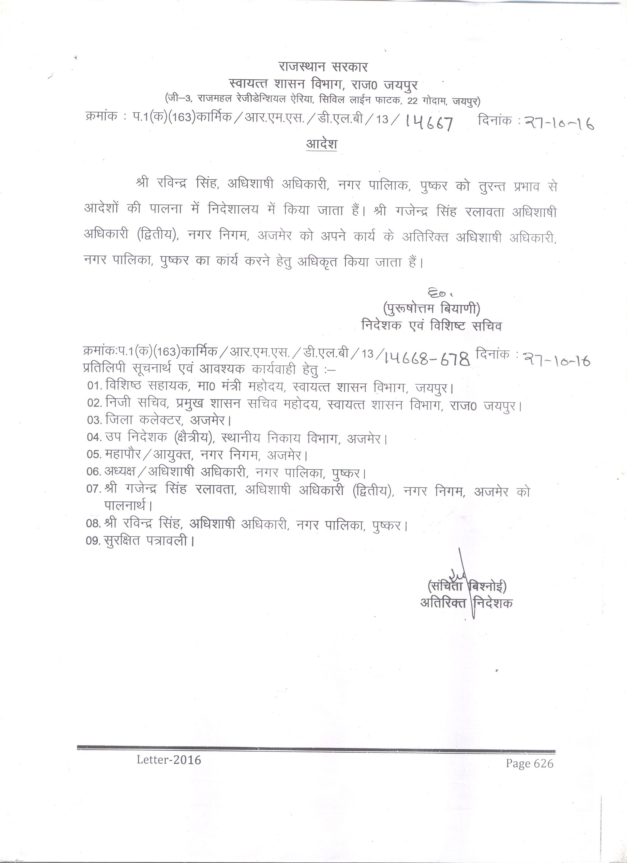 | 22 | Order Regarding Rajasthan Road Transport Corporation order no.7624 date 13-7-2016 | View |