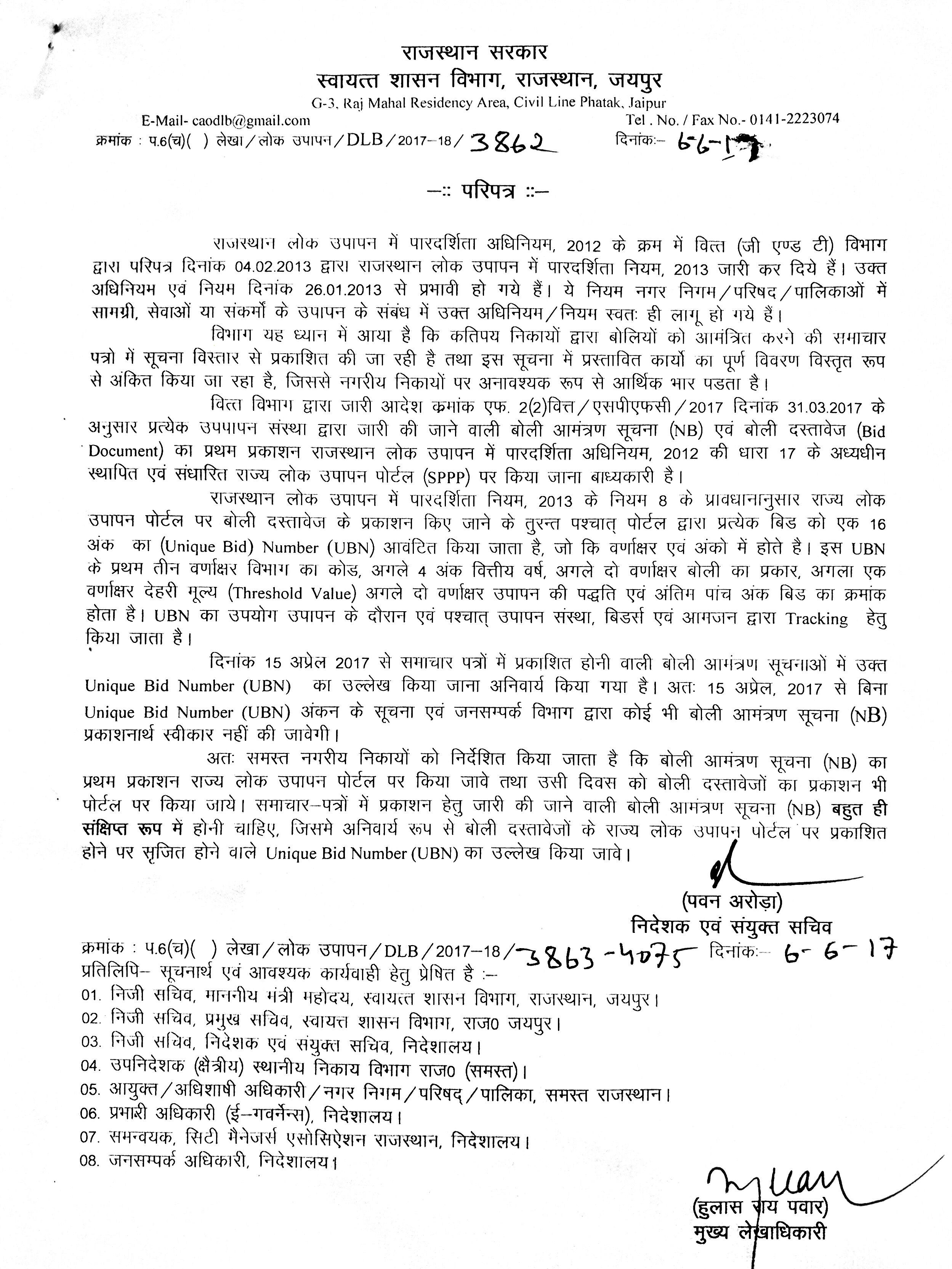 | Circular regarding Rajasthan Public Services Provided Guarantee Act circular no. 3166 date 25-01-2018 | view | |