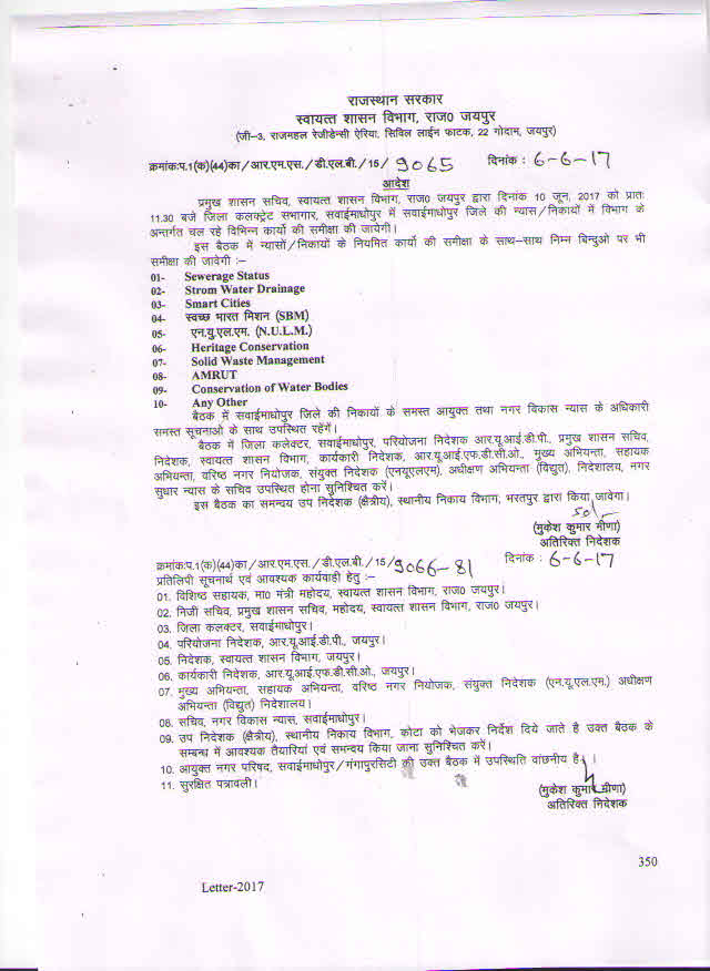 | Order regarding Swachh Sarvekshan 2018 Meeting on 30-01-2018 order no. 7313 date 29-01-2018 | view | |
