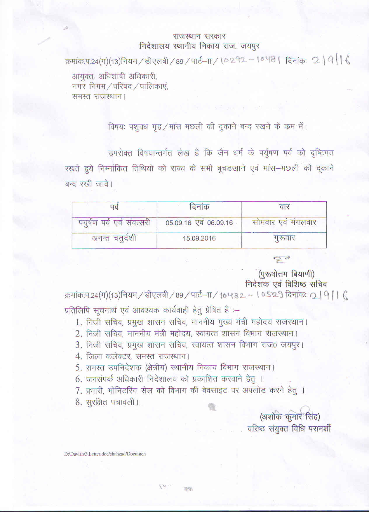 | 2 | order regading slughterhouse and meat- fish shop to close order no. 10292 date 2-9-2016 | View |